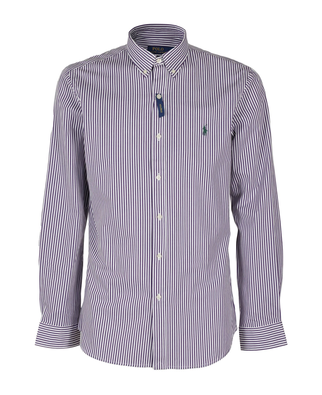 Shirt - Polo Ralph Lauren - White and purple striped color - Cotton - Classic collar - Button cuffs - Embroidered logo on chest - Front button closure - Slim fit.