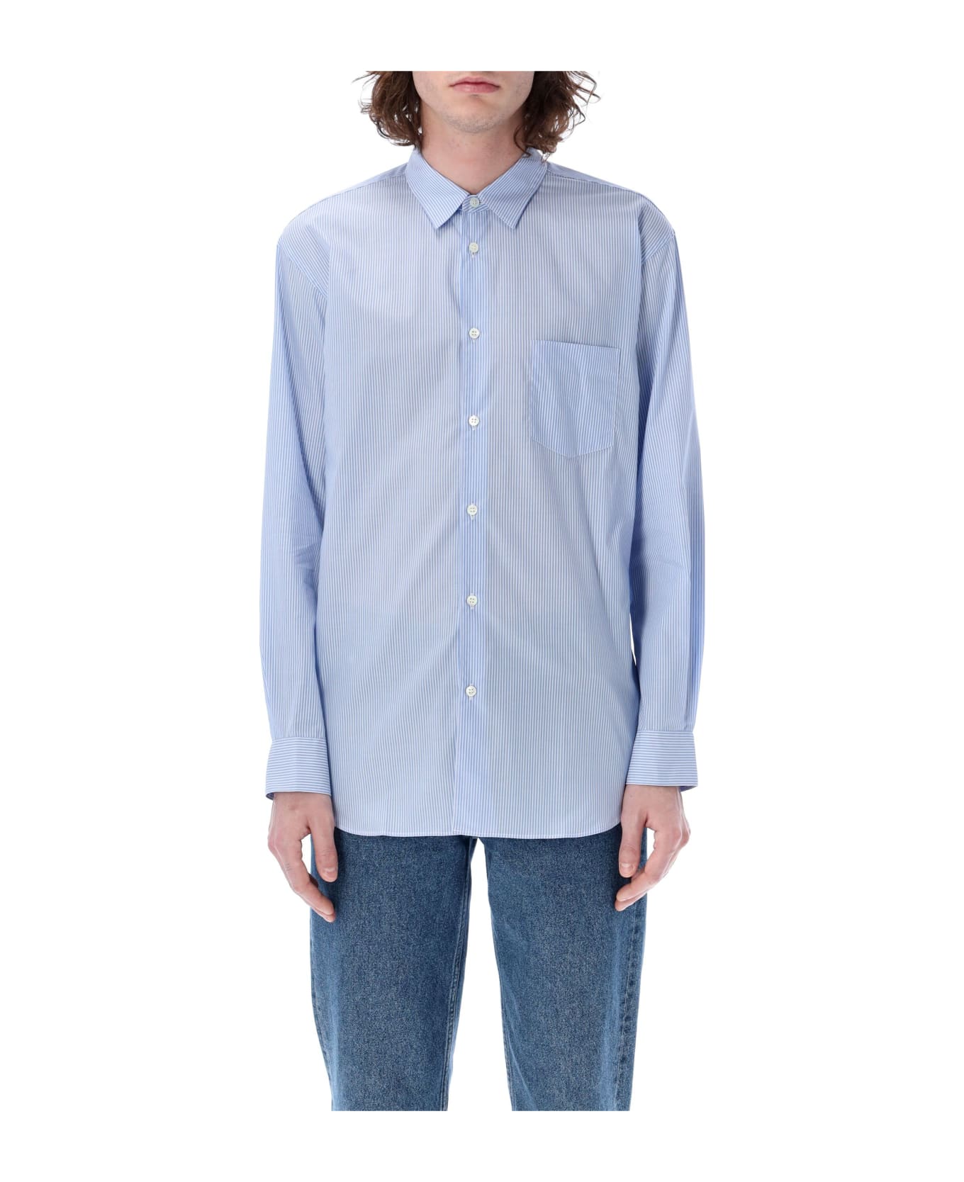 Cotton Striped Shirt By Comme Des Garçons Shirt. Featuring: Poitend Collar Buttons Closure Chest Patch Pocket Long Sleeves Button Cuffs Curved Hem Regular Fit The Model Is 1,90 M Tall And He's Wearing Size L