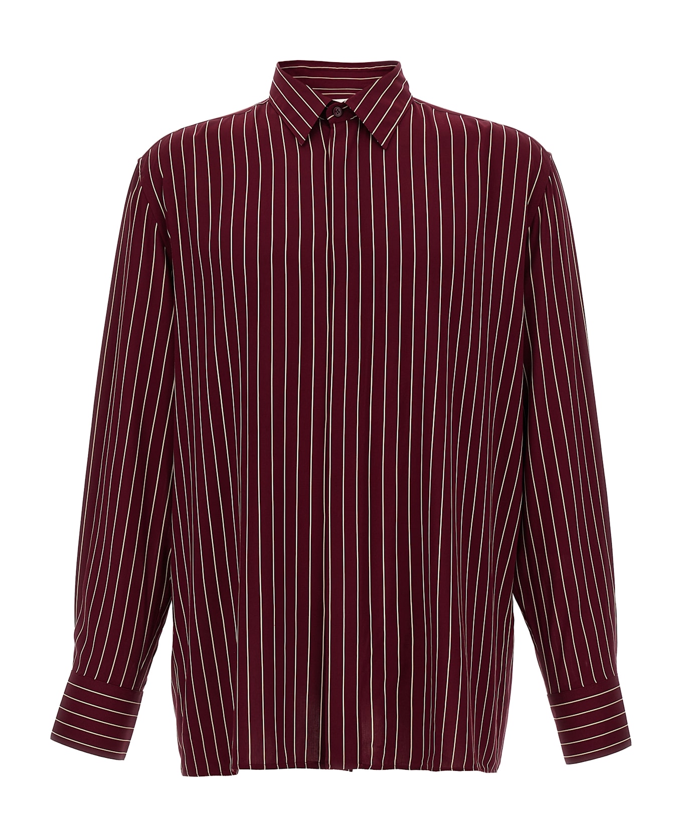 Striped viscose shirt with concealed front button closure, long cuffed sleeves and dropped shoulders. Composition: 100% viscose