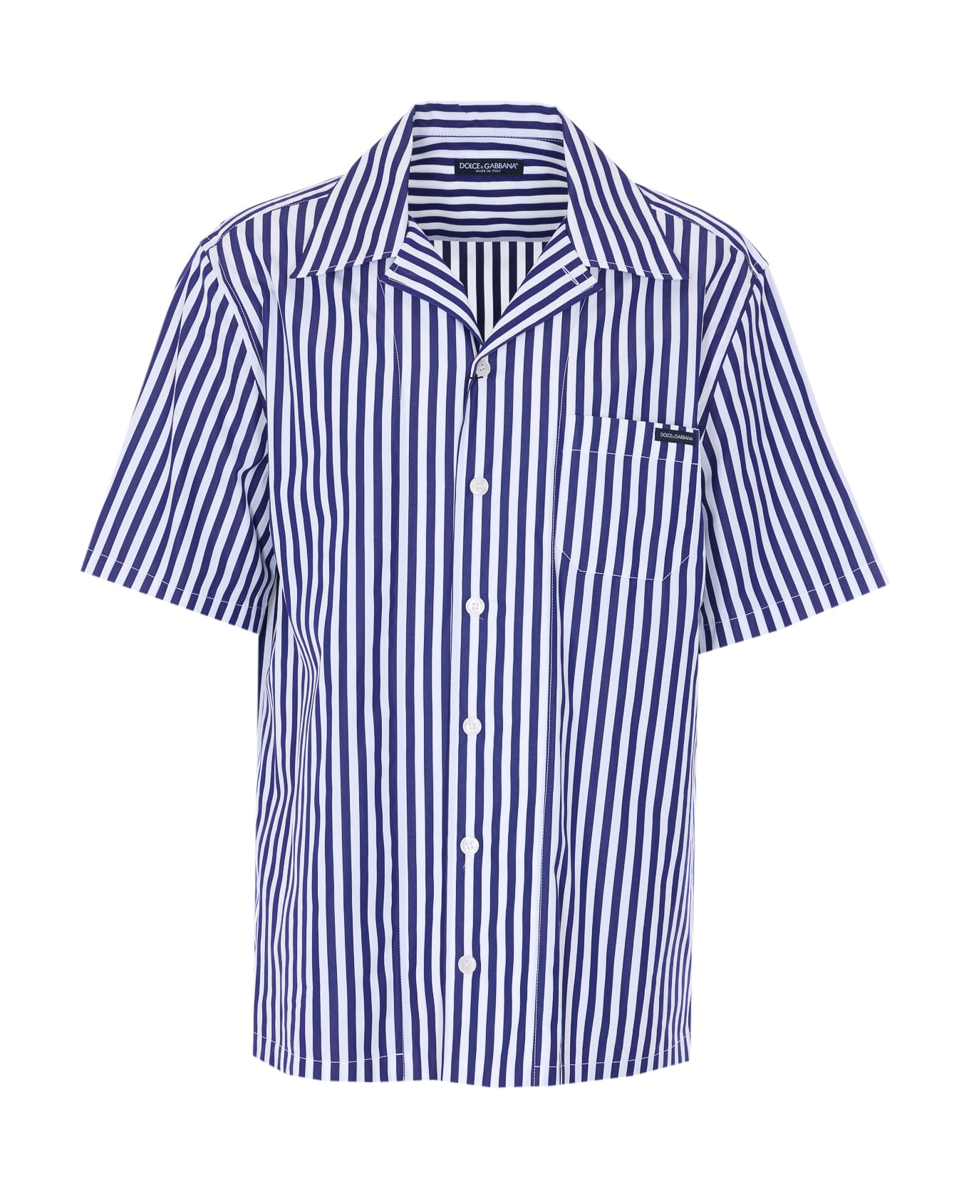 Dolce&Gabbana white and blue striped shirt with frontal buttons closure, regular collar, short sleeves, pocket Composition: 100% Cotton