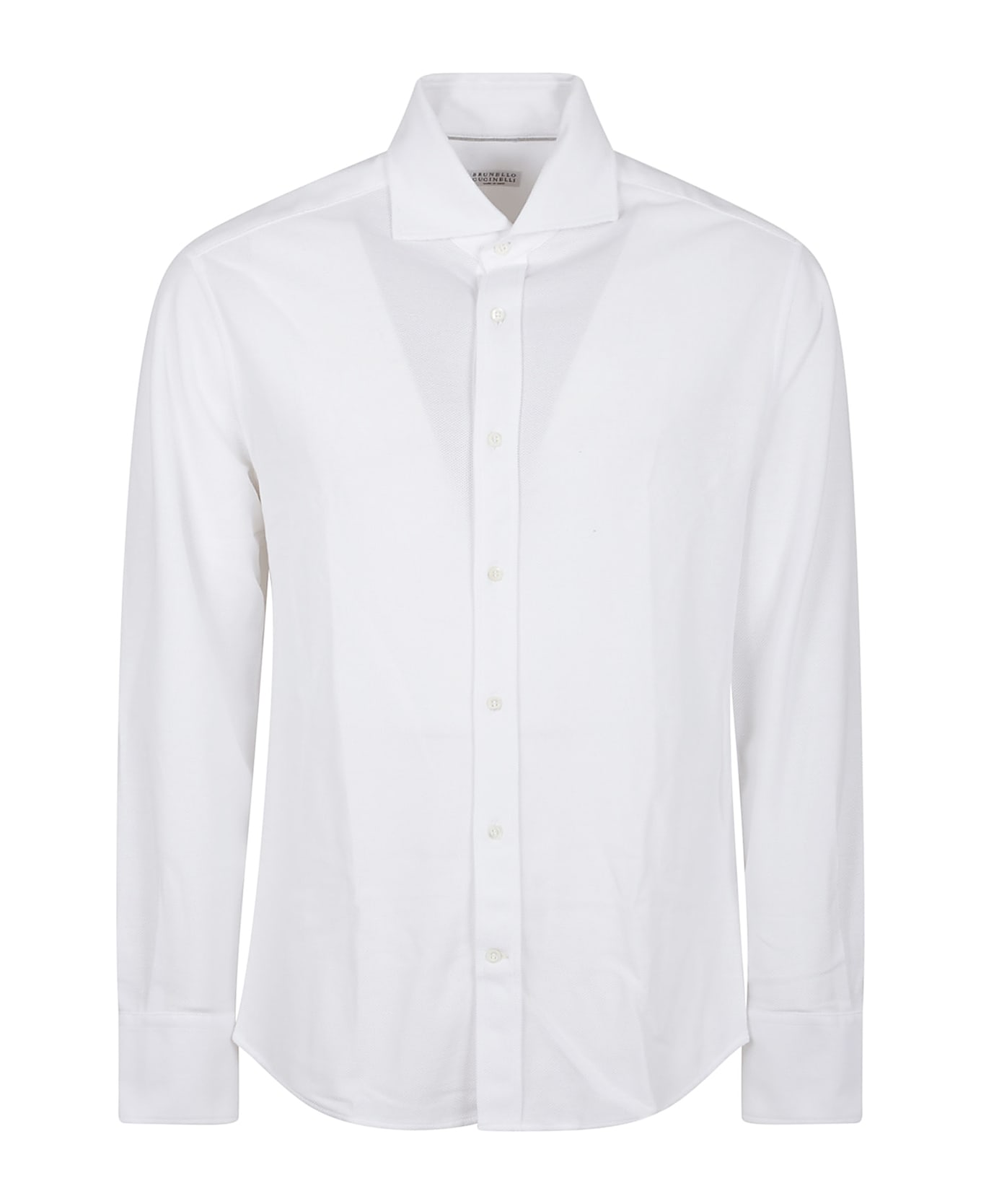 Cotton poplin shirt by BRUNELLO CUCINELLI. Placket closure and mother-of-pearl buttons also present on the cuffs with two buttons; French collar.