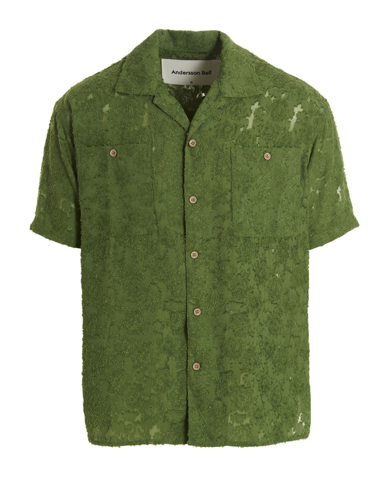 'Reverse' shirt in texturized fabric with button closure, chest pockets and short sleeves.