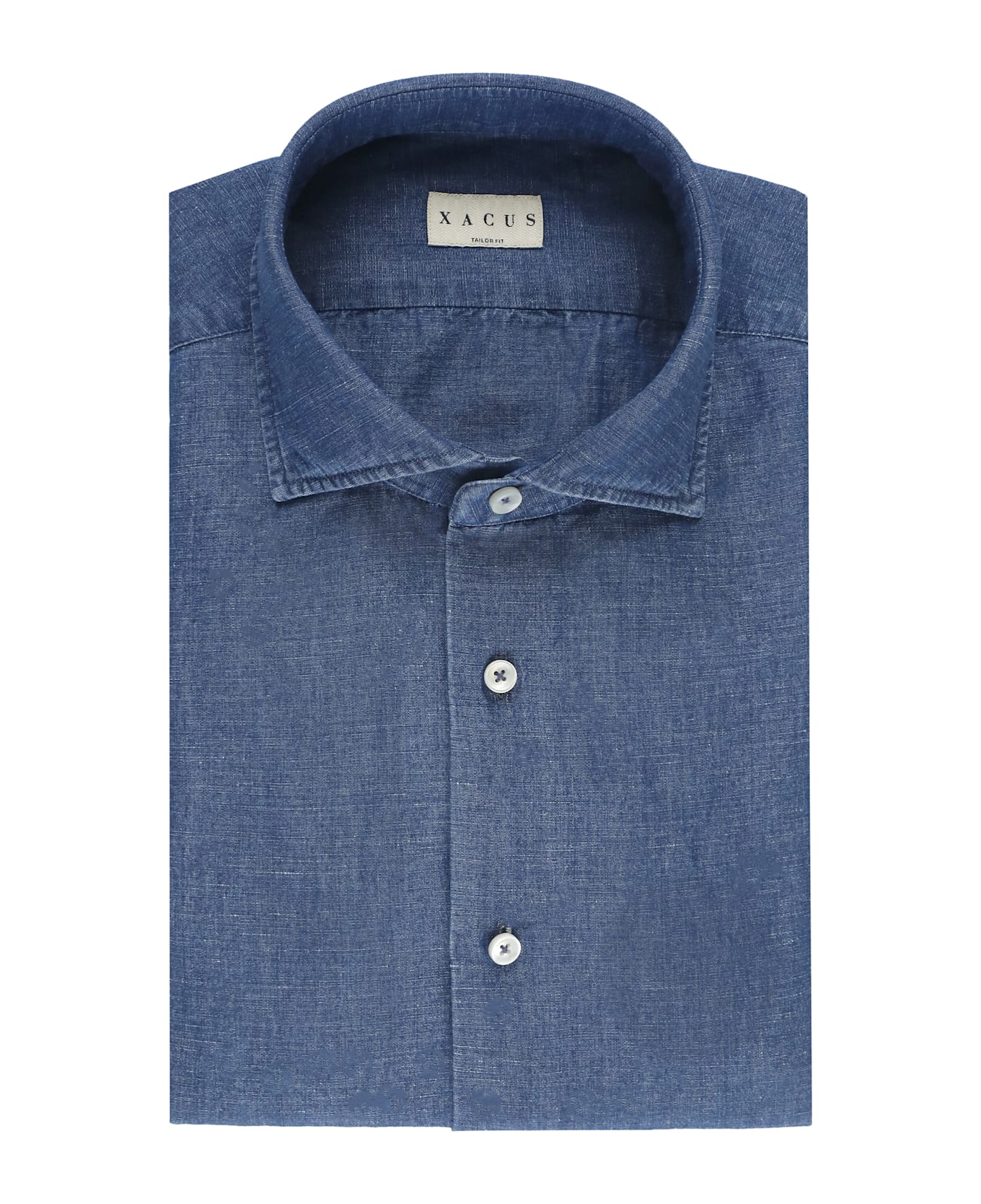 - Blue Xacus cotton and linen shirt for man - Collar - Long sleeves with buttoms at hem - Front buttoms fastening