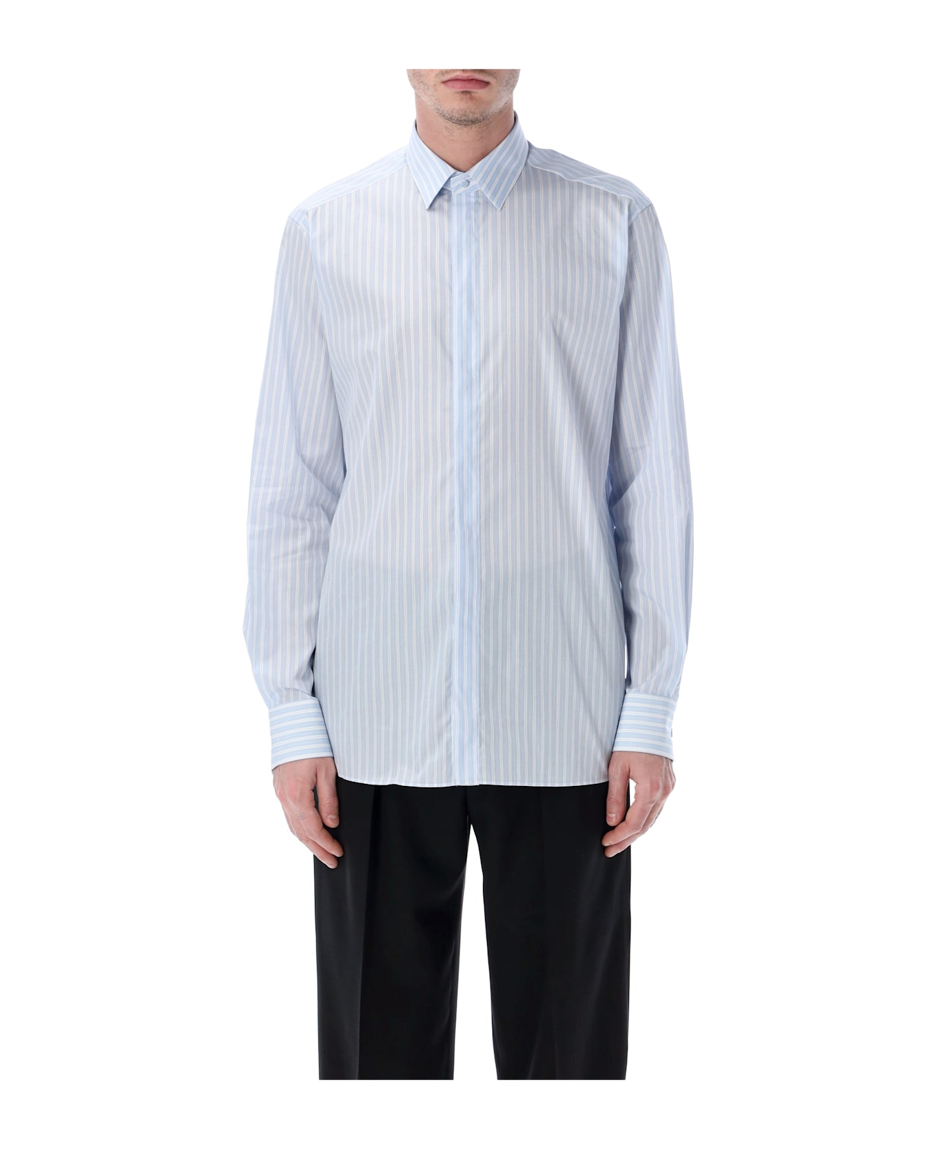Refresh Your Formal Wardrobe With The Tom Ford Striped Classic Fit Shirt. Made From High-quality Cotton, It Combines Comfort And Elegance With A Tailored Yet Relaxed Silhouette. Perfect For Business Or Smart-casual Looks, Its Subtle Stripe Pattern Adds A Refined, Modern Touch To Any Outfit. Fine Vertical Stripes Classic Fit Long Sleeves With Buttoned Cuffs Button-front Closure Andrea Is 1,90 M And Wears Size 41