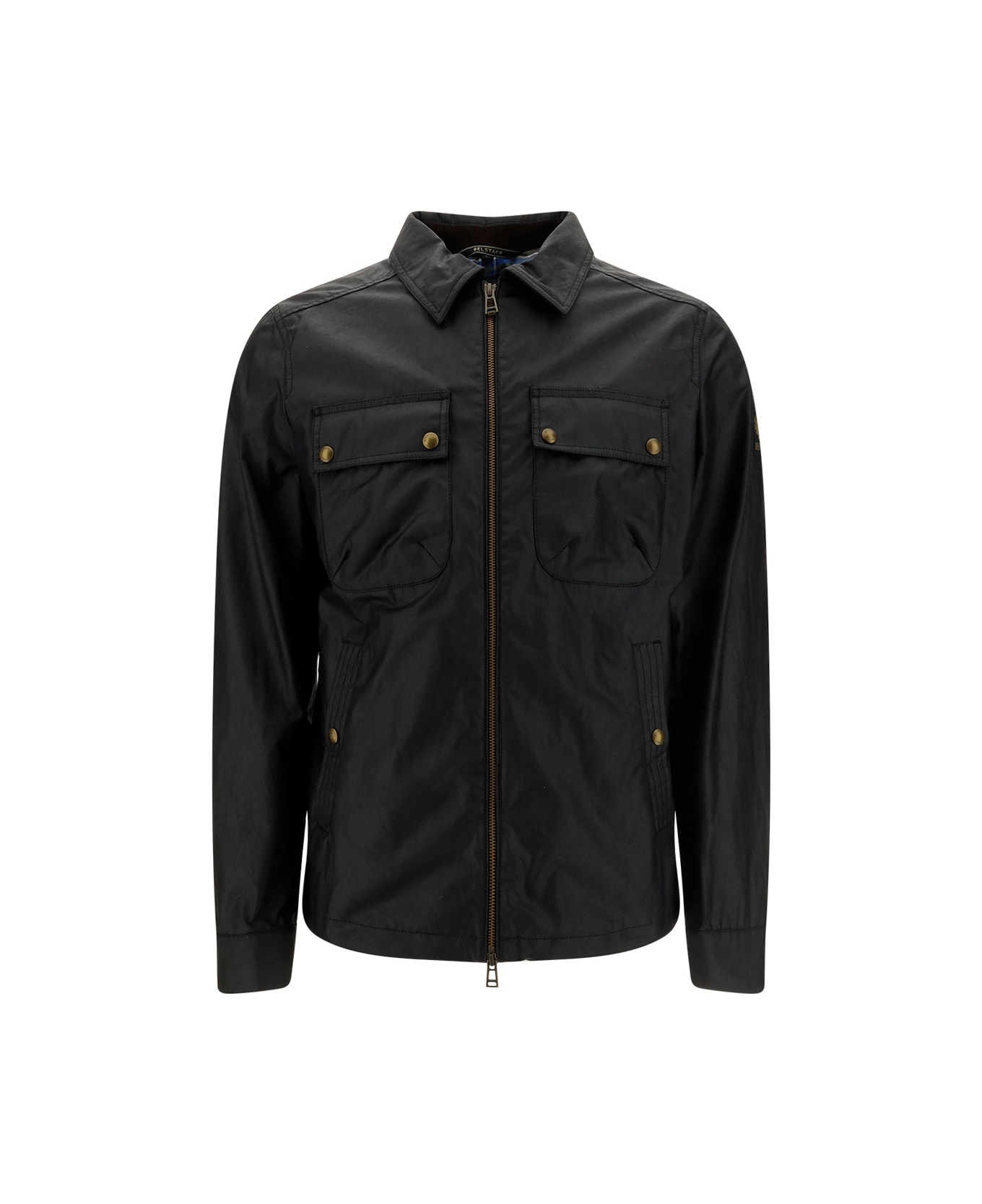 Tour over jacket by belstaff, front zipper closure, classic collar, two front patch pockets with snap buttons for closure, regular fit.
