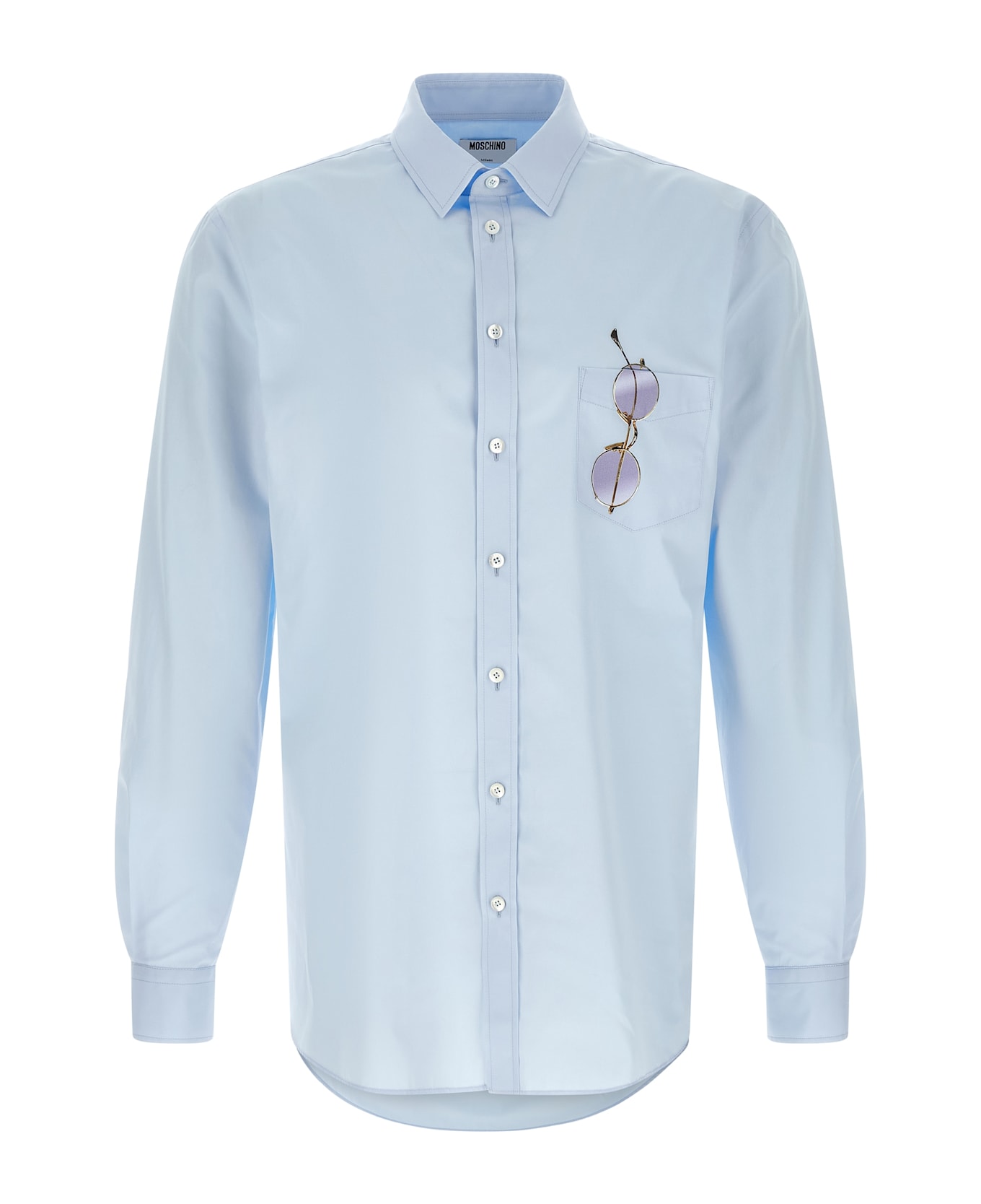 Cotton poplin shirt, pocket with print in the shape of trompe-l' il-effect glasses, front button closure, back logo embroidery, long cuffed sleeves. Composition: 100% cotton
