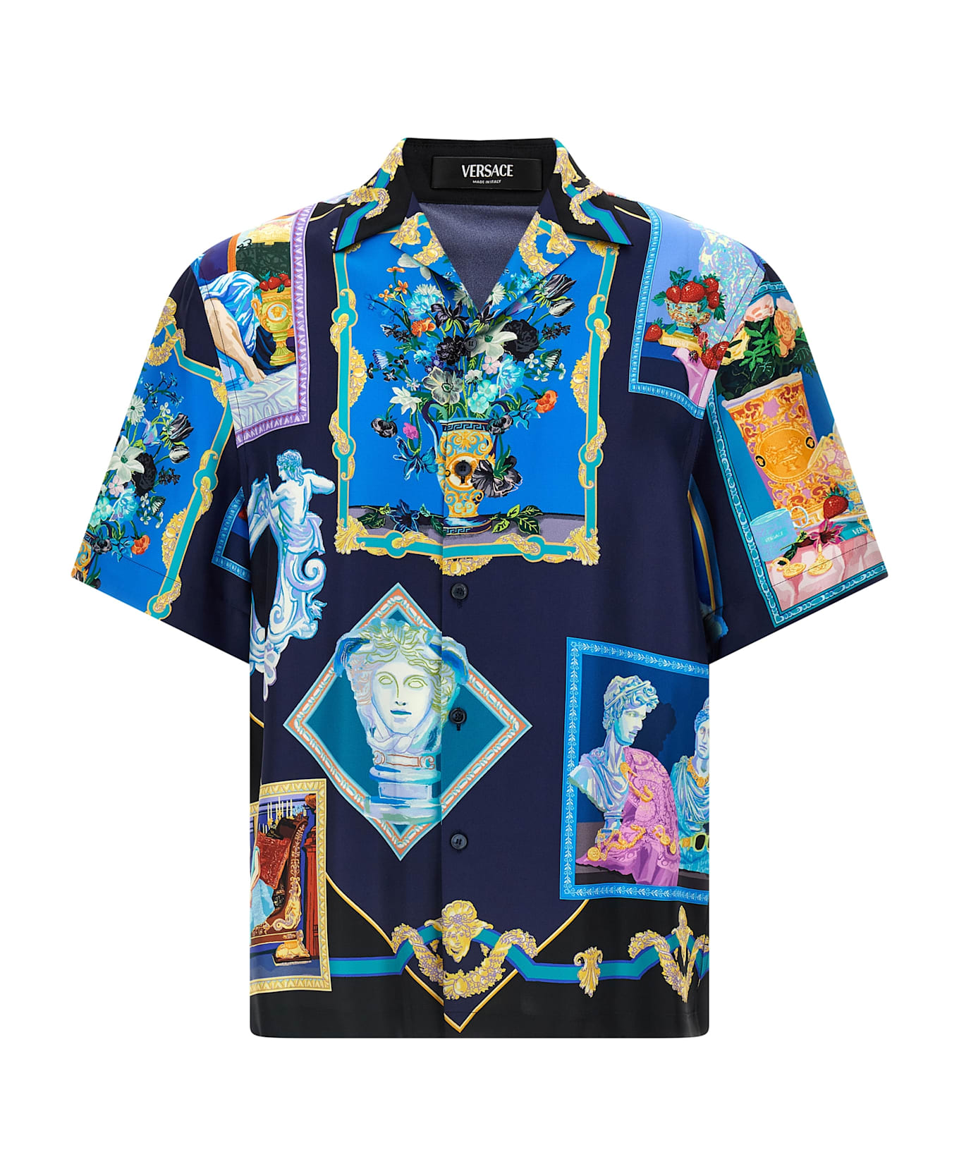 'Versace Gallery' print silk twill shirt with button closure, short sleeves, side slits. Composition: 100% silk
