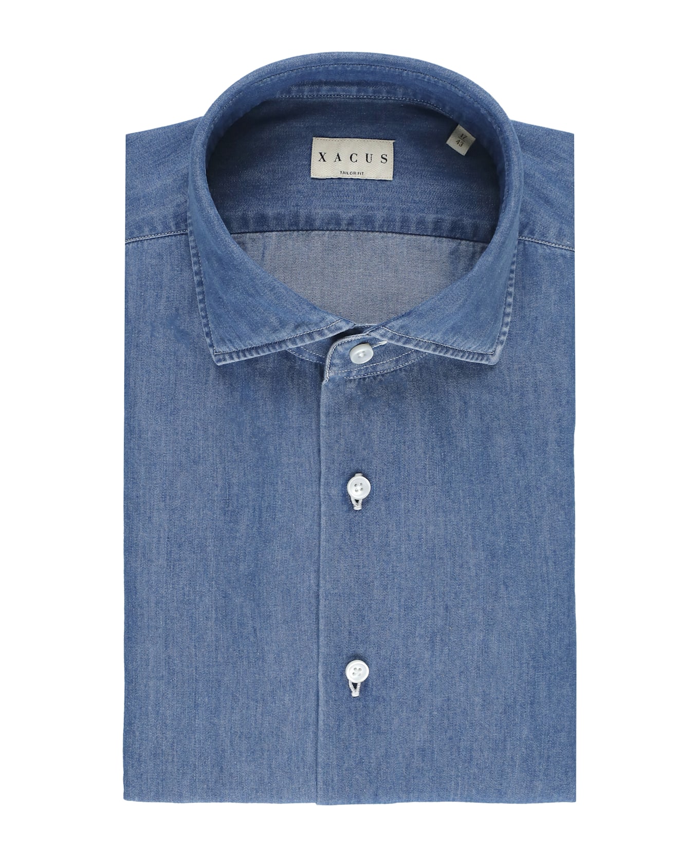- Blue Xacus shirt for man - Collar - Long sleeves with buttons at hem - Front buttons fastening