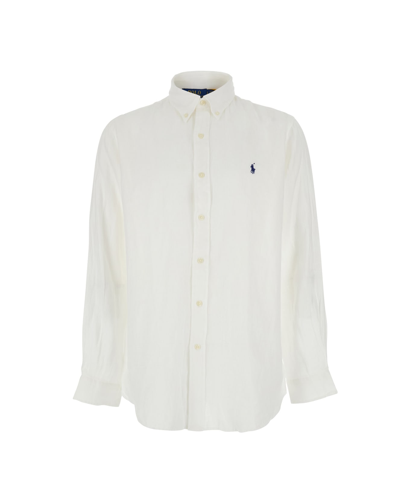 'Custom Fit' Shirt White Classic collar Long sleeves Front button closure Tonal buttons Pony embroidery on the front Buttoned cuffs Curved hem Linen Relaxed fit