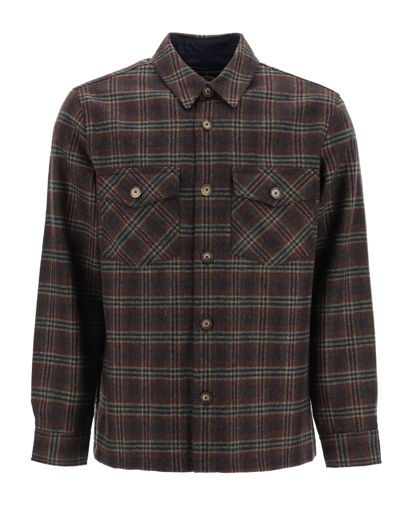 Portuguese Flannel overshirt made of tartan pure virgin wool fabric, featuring French placket, adjustable cuffs, straight hem and two patch chest pockets with buttoned flap. Viscose lining. The model is 187 cm tall and wears a size L.