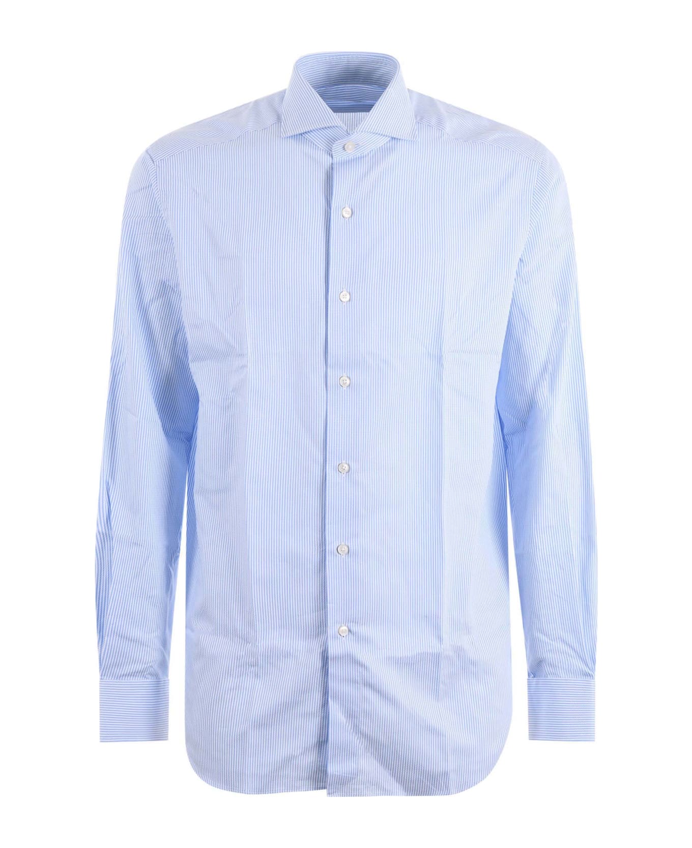 Xacus shirt in textured cotton with even stripes motif. French collar. Button closure. Long sleeve. Wrist with button. Measurement in photo 39 100% cotton