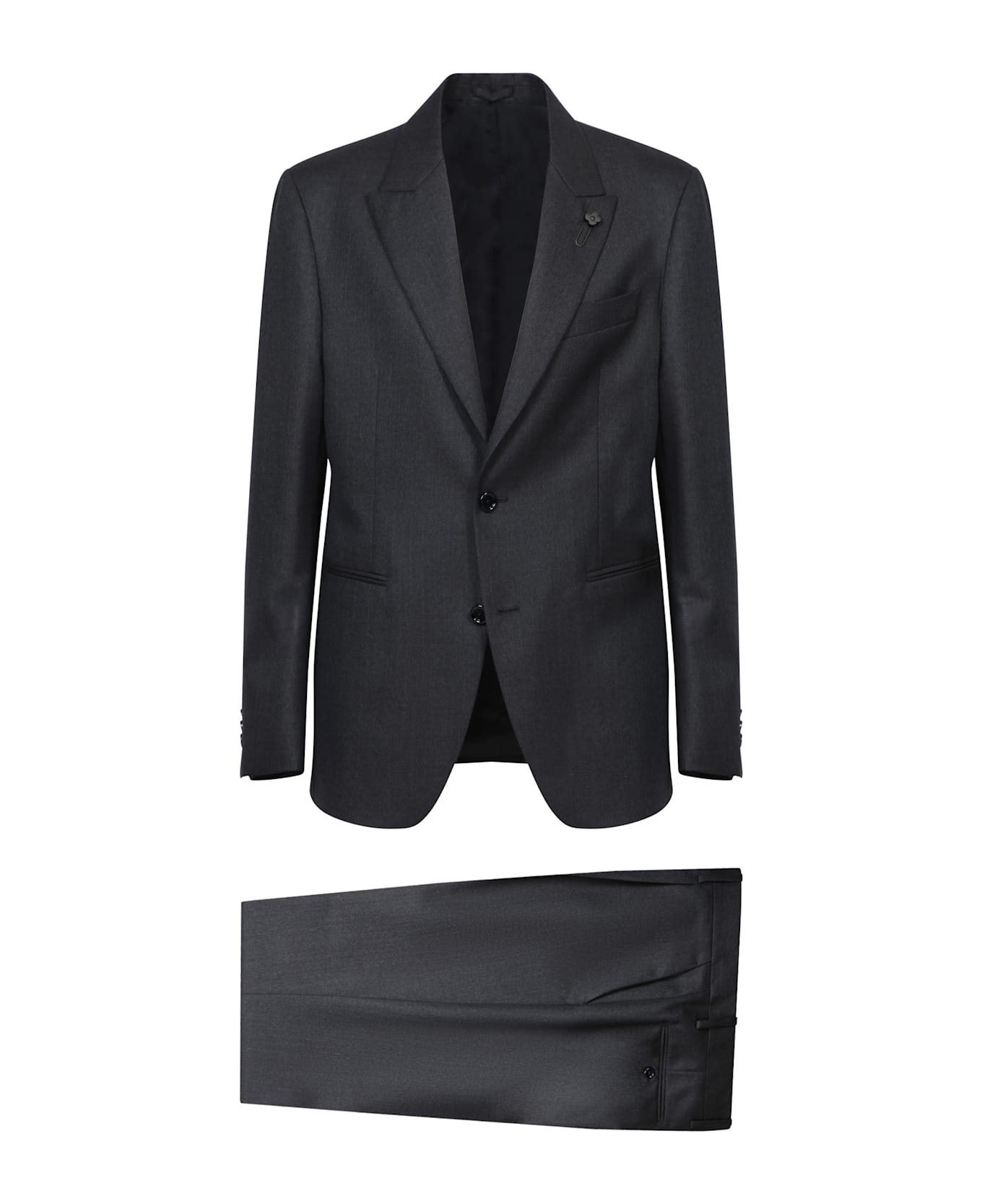Elegant Lardini blue wool suit, perfect for a sophisticated look; features refined details such as the lapel pin and contrasting fabric lining.
