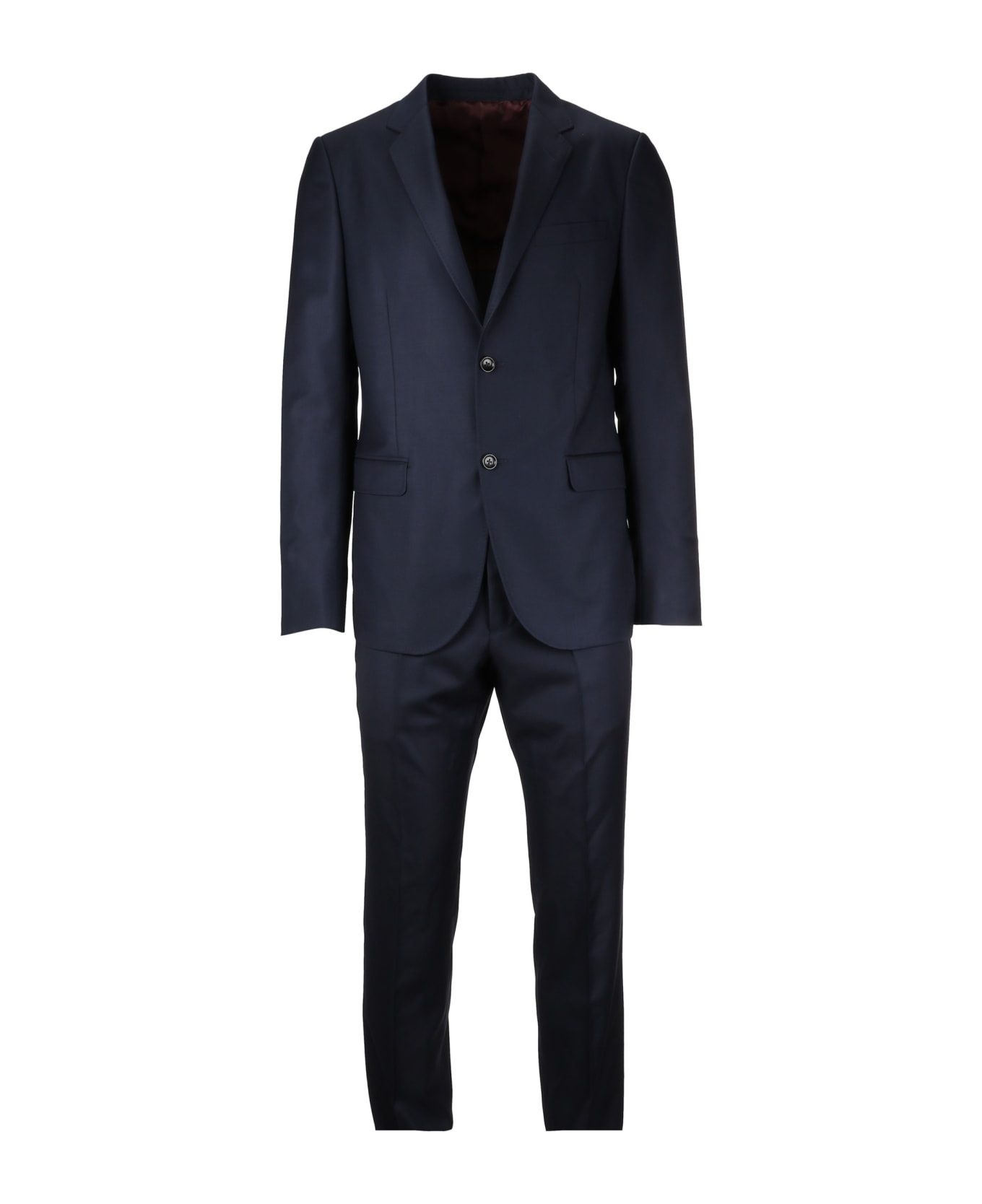 Two-piece Suit from Gucci: Blue Two-piece Suit with front button fastening, long sleeves, notch lapels, button cuffs, front flap pockets and classic trousers.