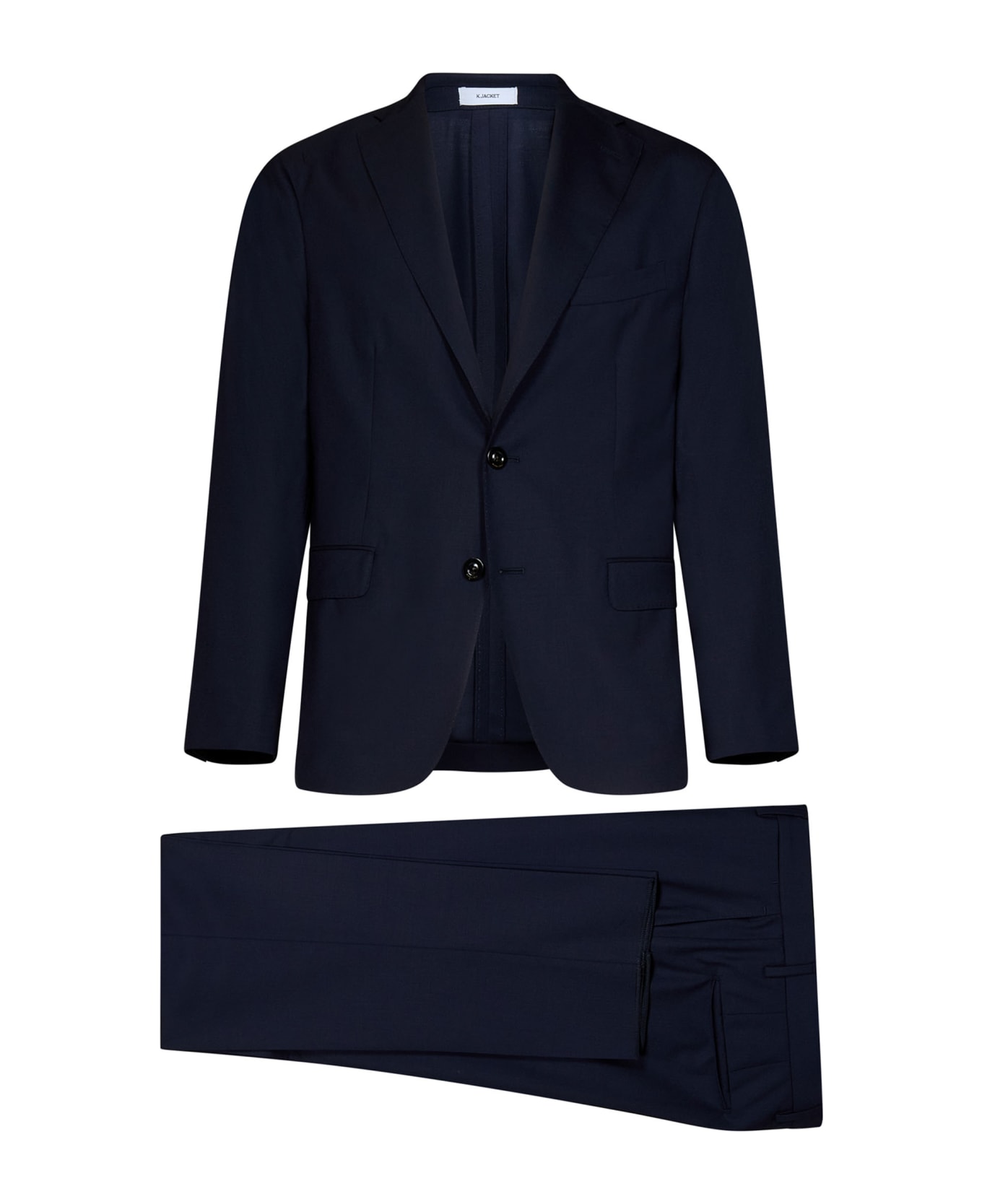 • K-jacket blazer: Single-breasted, front two-button closure; Notched lapel; Long sleeves, four-button cuffs; Front welt pockets with flap, chest pocket; Double side slit at back; Unlined; Deconstructed