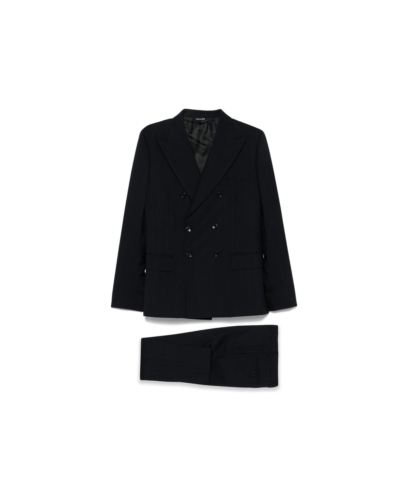 blue double-breasted button fastening peak lapel welt pockets