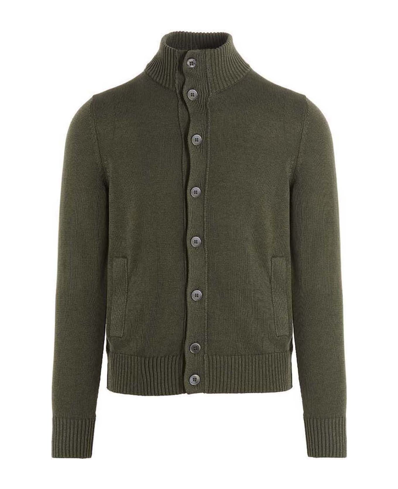 Chioto' cotton and linen cardigan, with button closure, pockets, a high collar, and long cuffed sleeves. : This product is made in sustainable materials. Composition: 64% linen 36% cotton