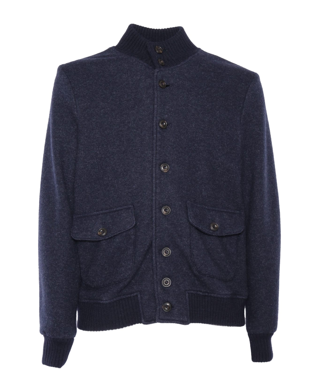 Bomber jacket in virgin wool blend, button fastening, ribbed edges, patch pockets with flap