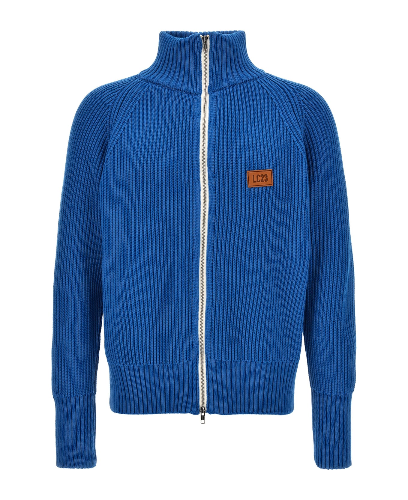 'English' ribbed wool cardigan with zip closure, high neck, front logo patch.
