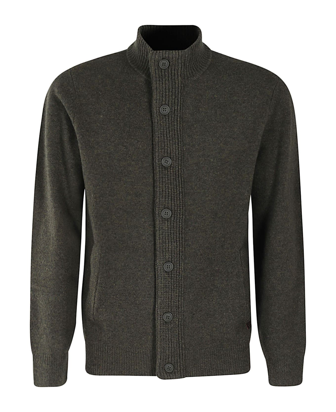 Essential Patch Zip Cardigan - Barbour - Green color - Wool - High collar - Long sleeve - Two flush side pockets - Ribbed finish collar, flap, sleeves and bottom - Alcantara elbow patches - Zip and button front closure