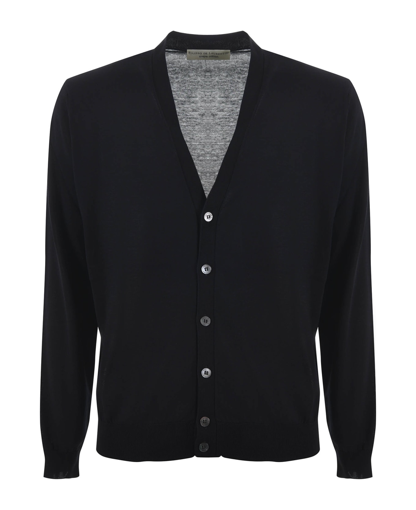 Filippo De Laurentiis cardigan in black cotton thread. V-neck. Long sleeve. Button closure. Ribbed cuffs and bottom. Measurement in photo: 50 100% cotton