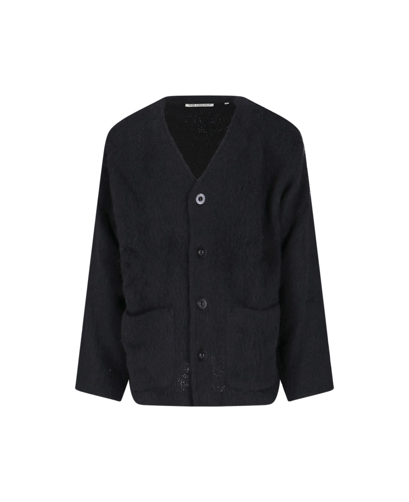 Our Legacy mohair cardigan, black, V-neck, button fastening, two front patch pockets, straight hem.