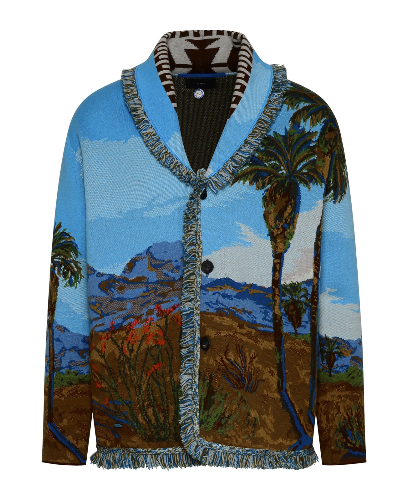 Lapel collar, button closure, two side welt pockets, Land of Prerequisite jacquard all over print, logo tag appliqué on the front, frayed hemline Composition: 44% Cotton, 36% Wool, 20% Silk