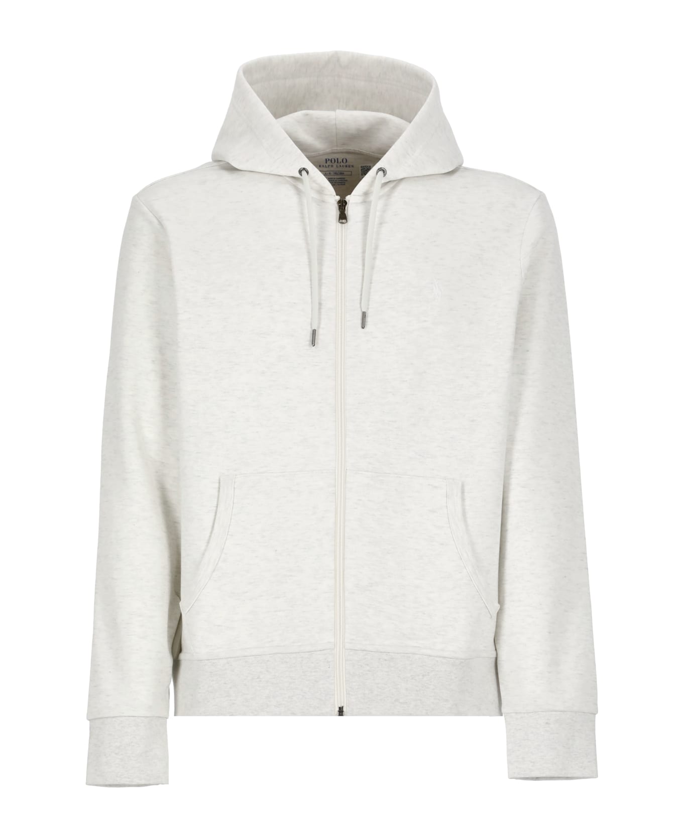 - Grey Ralph Lauren cotton sweatshirt for man - Hood with drawstrings - Long sleeves - Front zip fastening - Elastic ribbed trims - Front contrasting color embroidered iconic Pony - Two front slit pockets