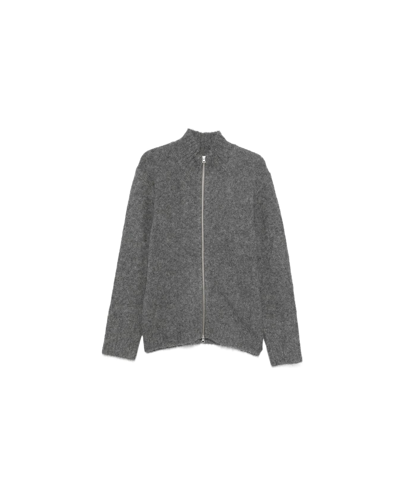 grey high neck front zip front long sleeves