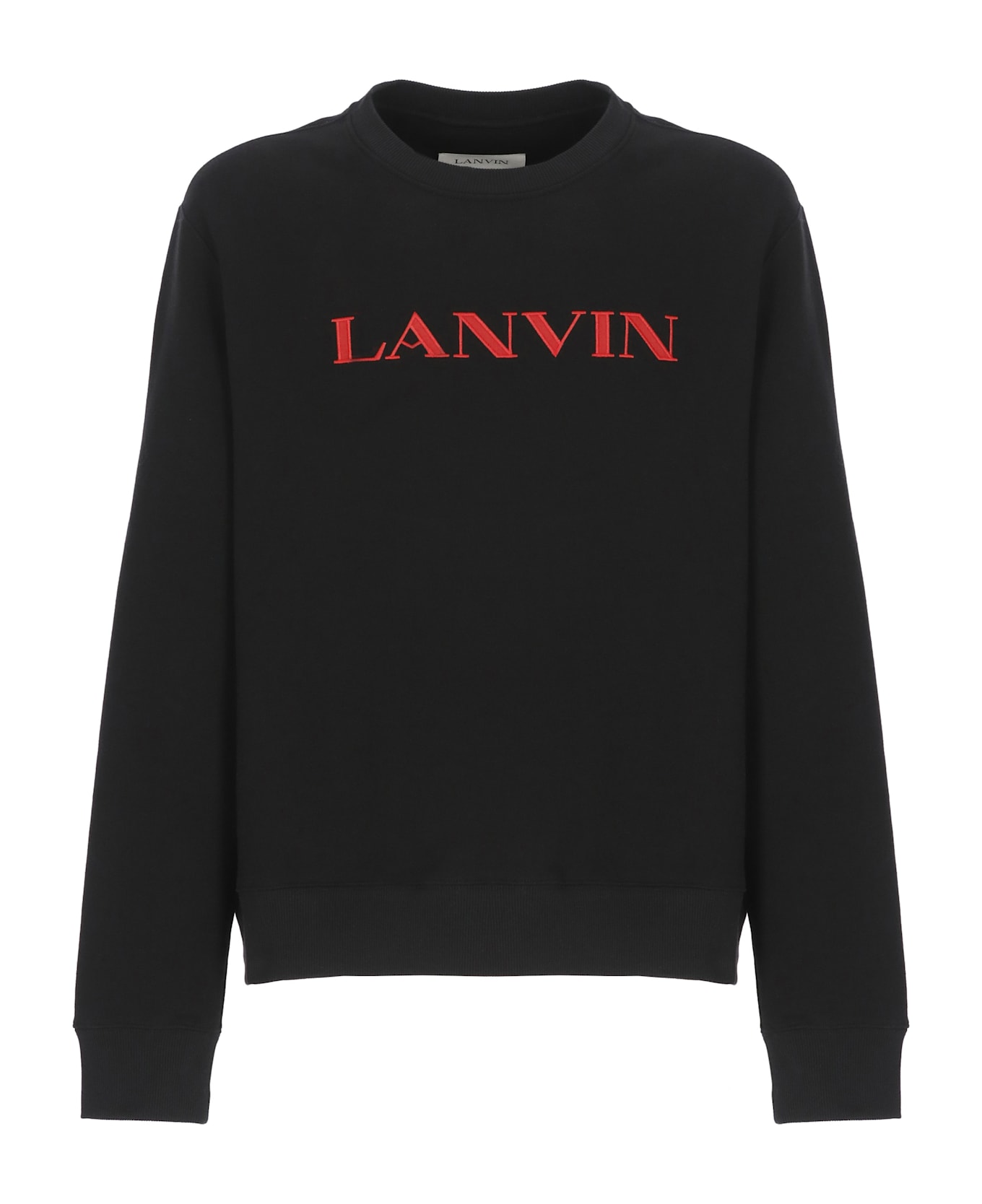 - Lanvin black man's cotton sweatshirt - Crewneck - Long sleeves - Front contrasting color embroidered logo - Elastic ribbed trims Composition: 100% Cotton Accessories:, 100% Polyester