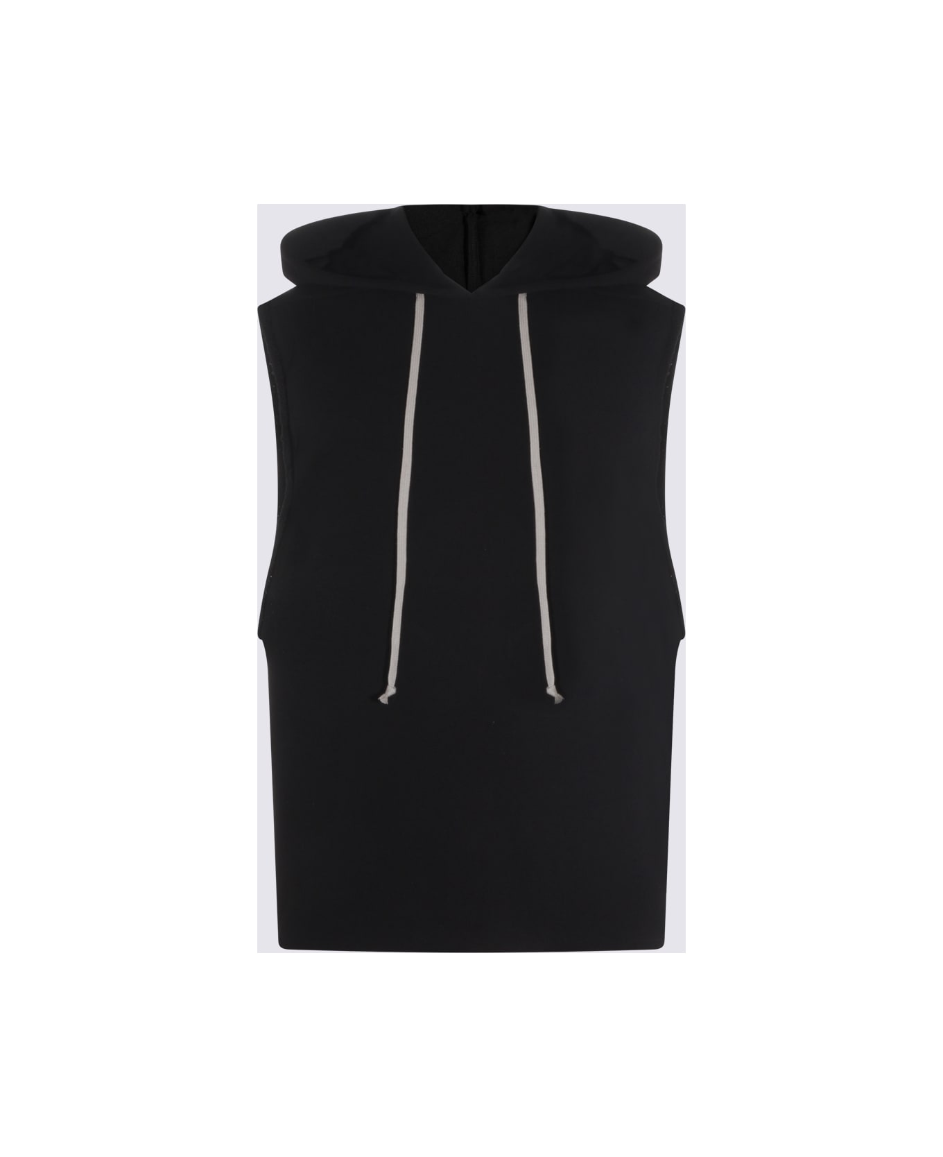 Black cotton sweatshirt from Rick Owens featuring sleeveless, hood, drawstrings and regular vestibility.