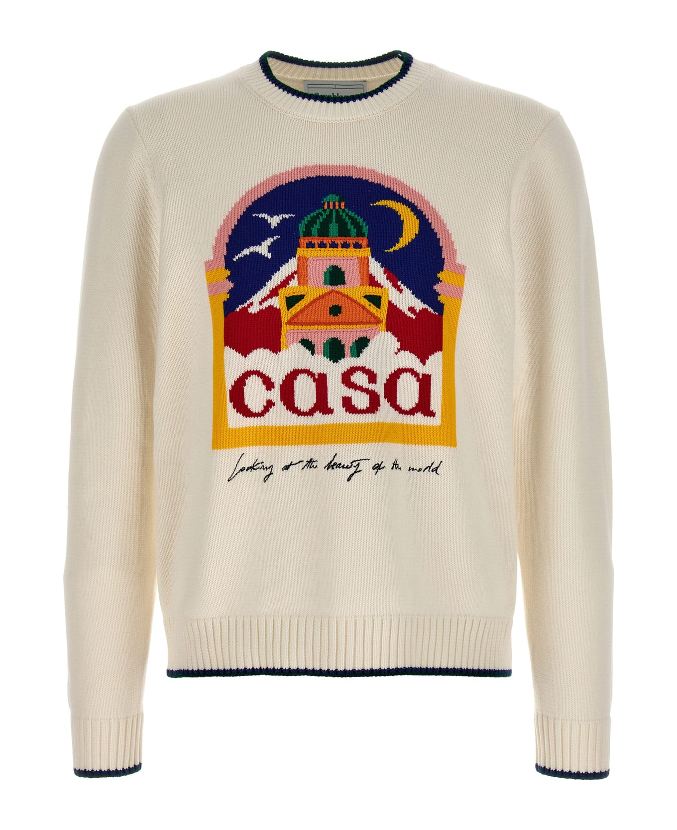 'Casa intarsia' crew neck sweater in cotton with front intarsia. Composition: 100% cotton