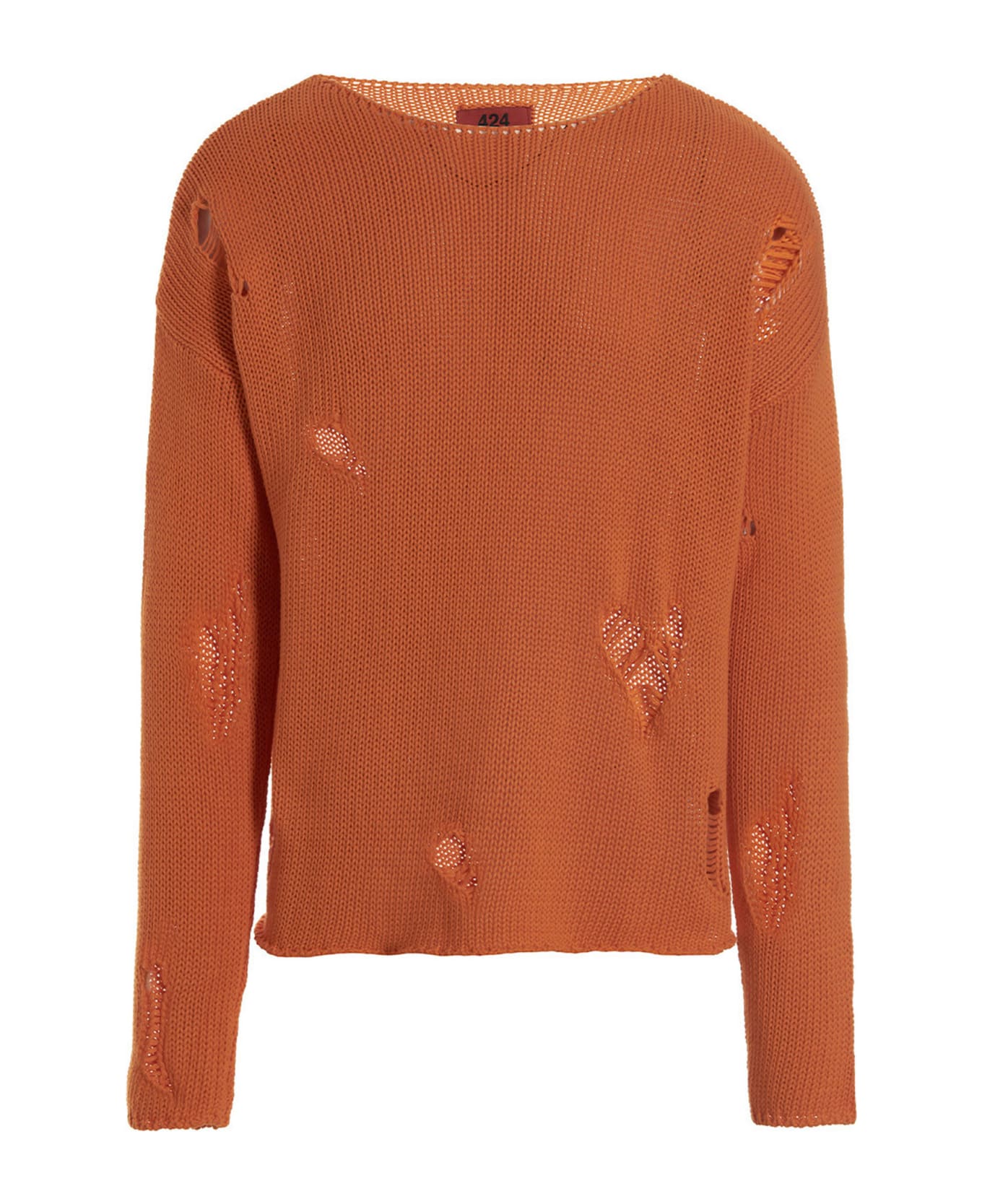 Cotton sweater featuring unfinished effect, crewneck, and long sleeves.