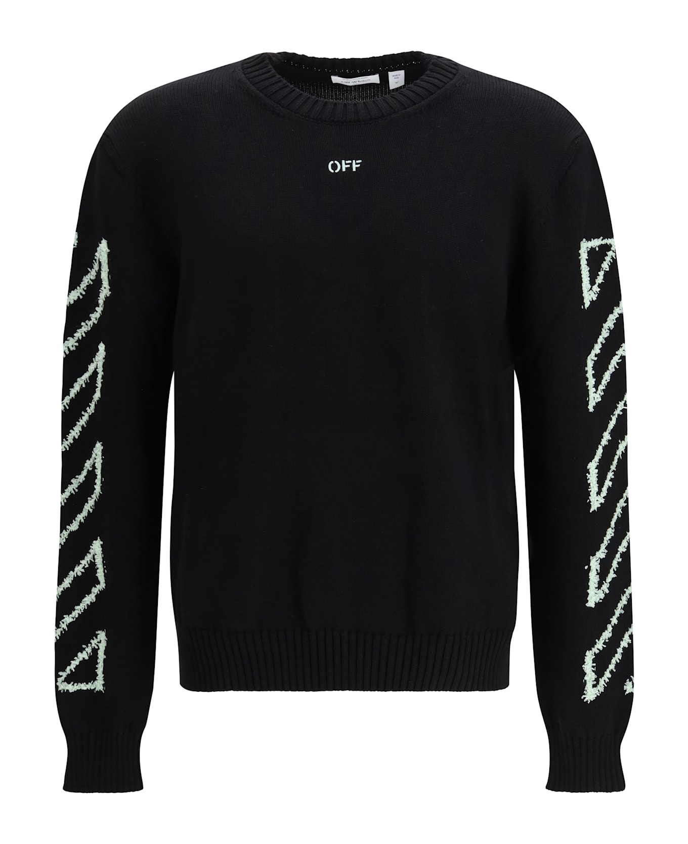 The diagonal arrow fuzzy sweater by off-white combines intricate craftsmanship with contemporary design. featuring iconic diagonal arrows, this sweater offers unique visual appeal, comfort, and style. perfect for those looking for a distinctive and modern garment.