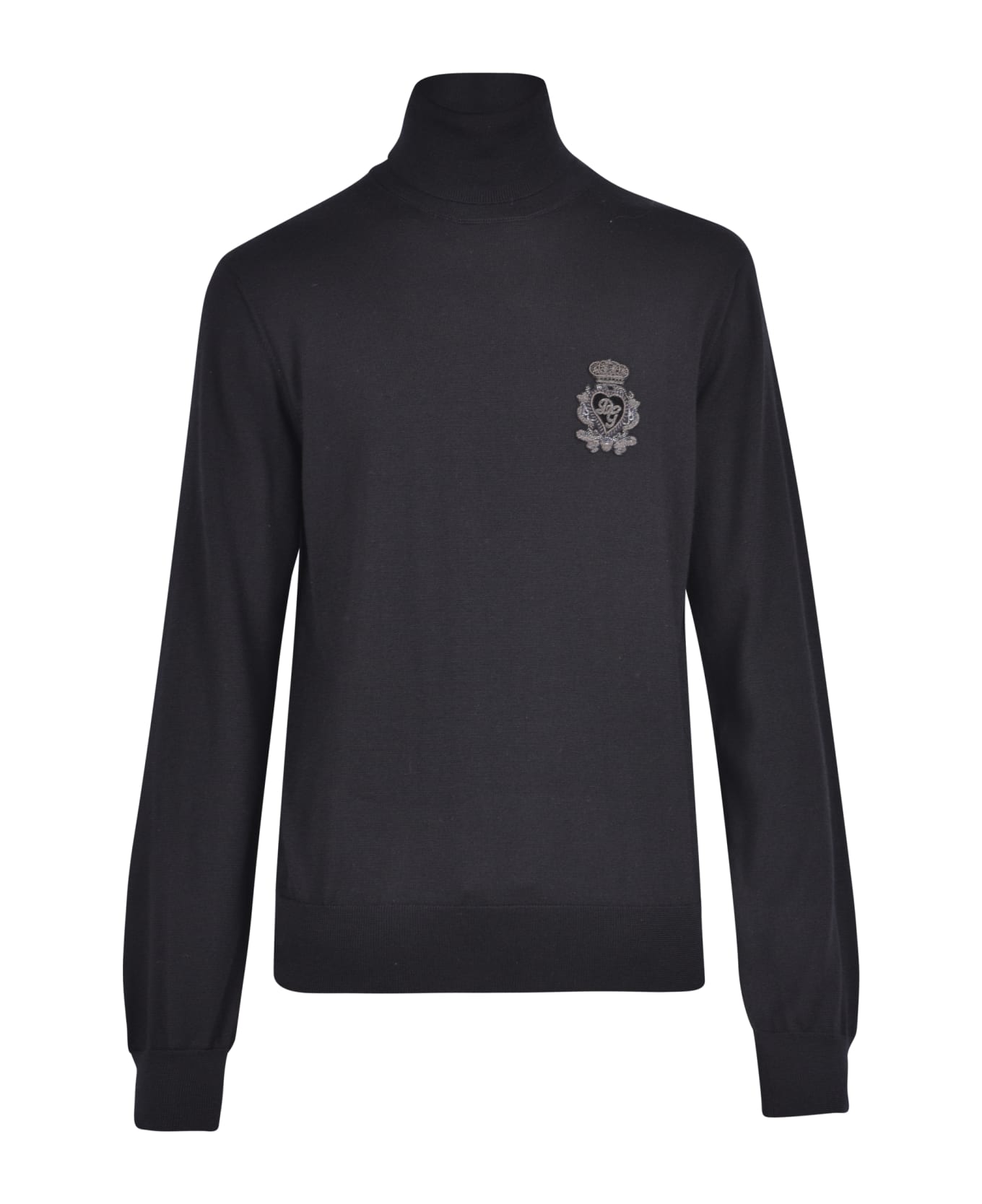 Branded sweater from Dolce&Gabbana: Black branded sweater with turtleneck, long sleeves, ribbed edges and embroidered chest.