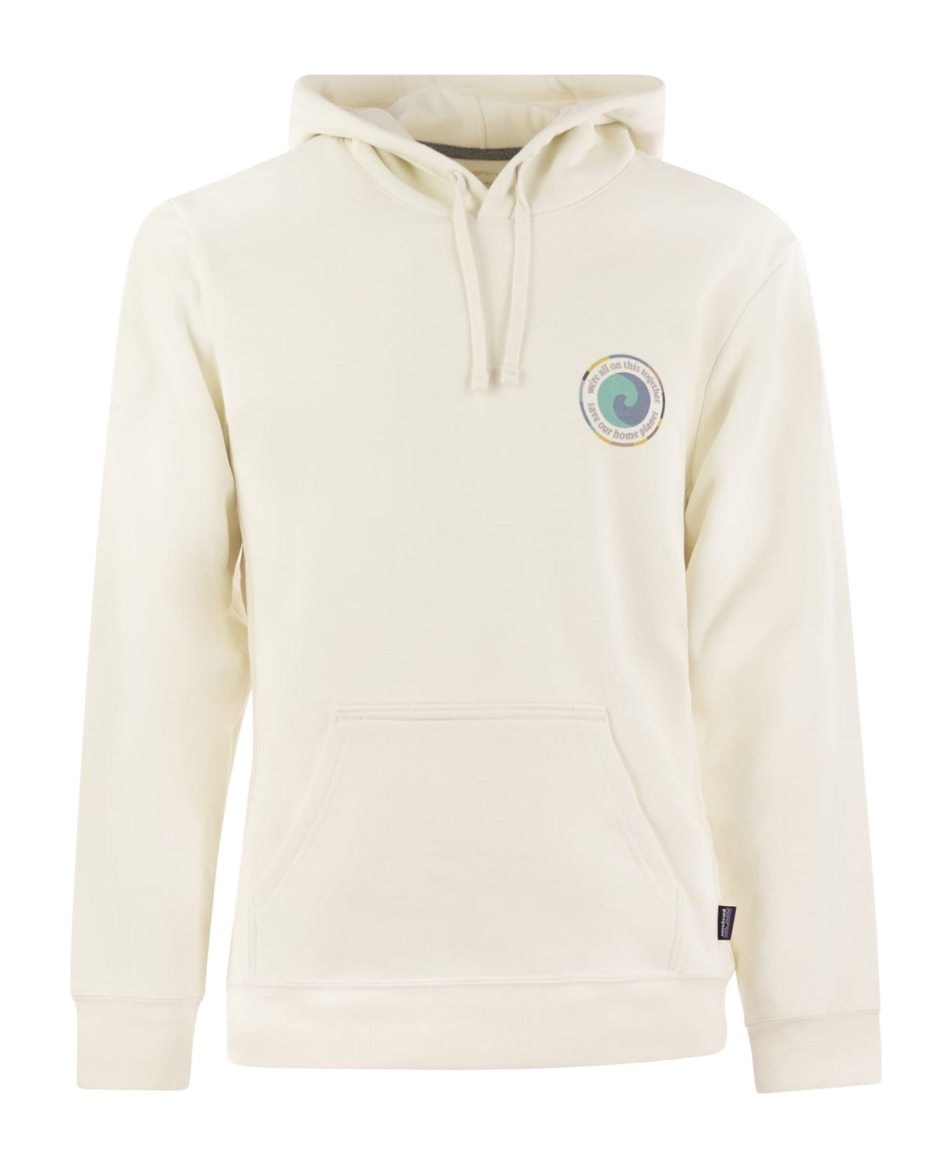 In the graphic motif of the Unity Fitz, the stylised Earth symbol is surrounded by the two key messages of Patagonia's mission statement. Saving our planet is a priority that can no longer be ignored and requires the contribution of everyone, both as individuals and united by the common understanding that the future of life on Earth depends on our responsibility to protect it. This hoodie is made of plush fabric obtained entirely from recycled materials, with natural flexibility and a brushed reverse side. The use of waste textiles and recycled plastic bottles to make this hoodie reduces our dependence on virgin raw materials. Made in a Fair Trade Certified factory. - Fabric made entirely from recycled materials - Comfortable pullover hoodie - Ribbed inserts, cuffs and hem - Regular fit DESIGNER ID: 39694 BCW