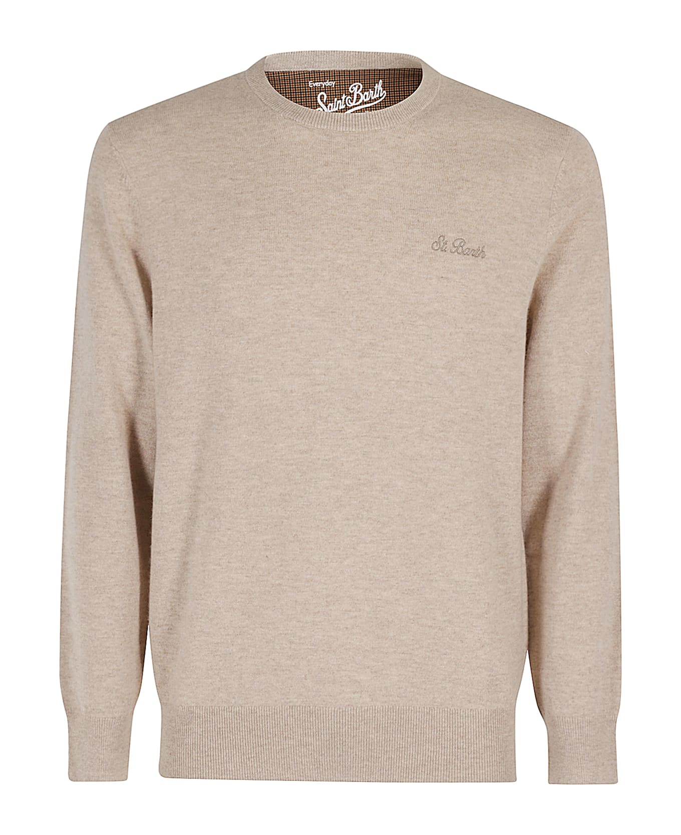Regent sweater - MC2 Saint Barth - Beige color - Wool blend fabric - Crew neck - Long sleeve with elastic cuff - Ribbed trim - Embroidered logo on chest - Regular fit