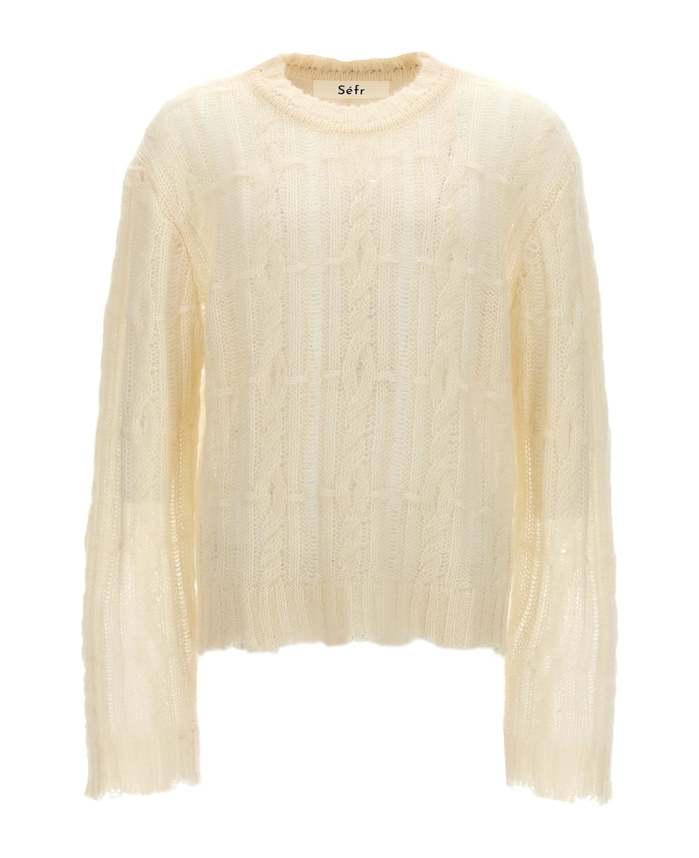 'Gilberto' sweater in mohair blend with cable knit, crew neck, long cuffed sleeves.