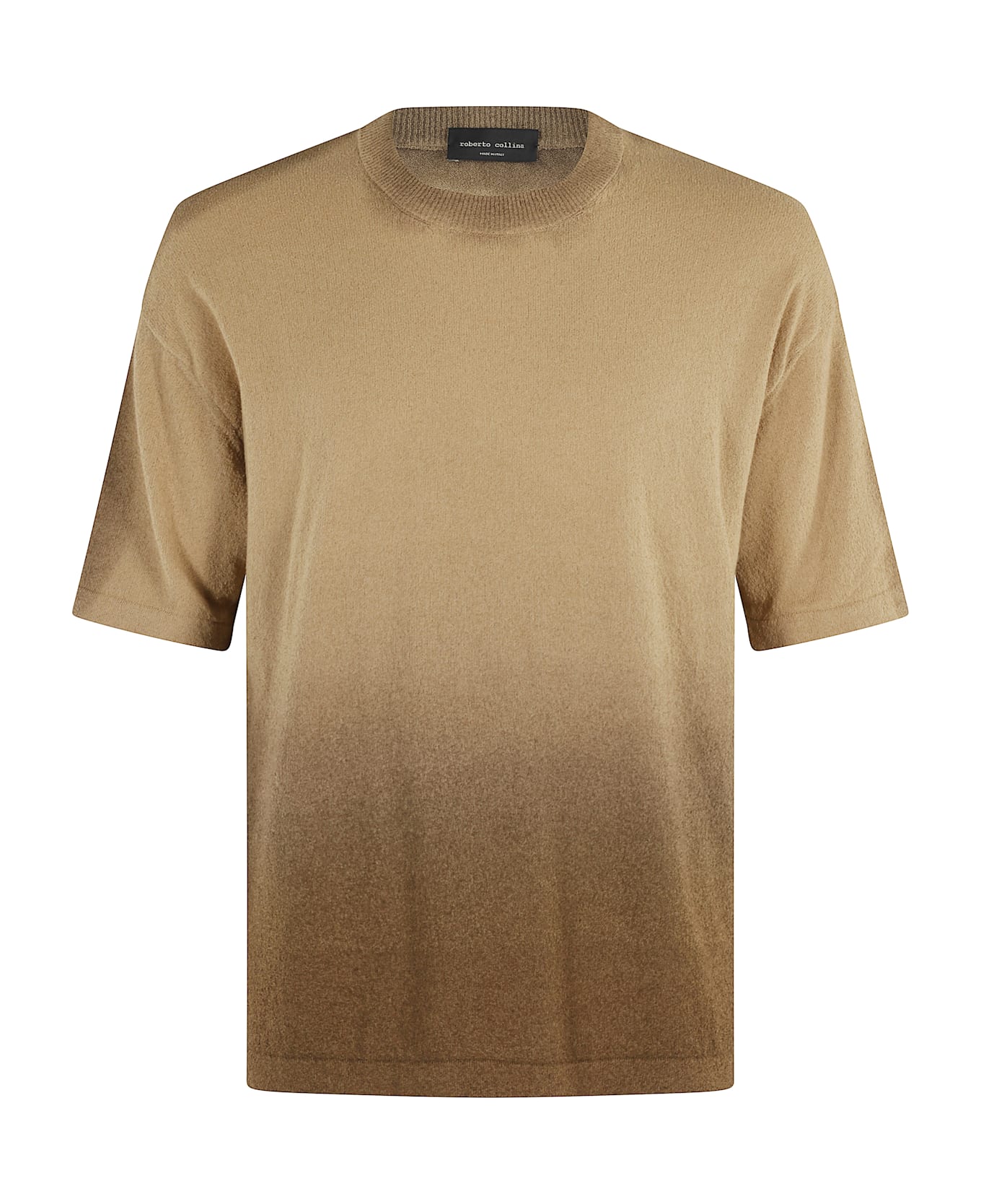 Sweater - Roberto Collina - Dark color - Cotton fabric with sun faded effect - Crew neck - Short sleeve - Over fit