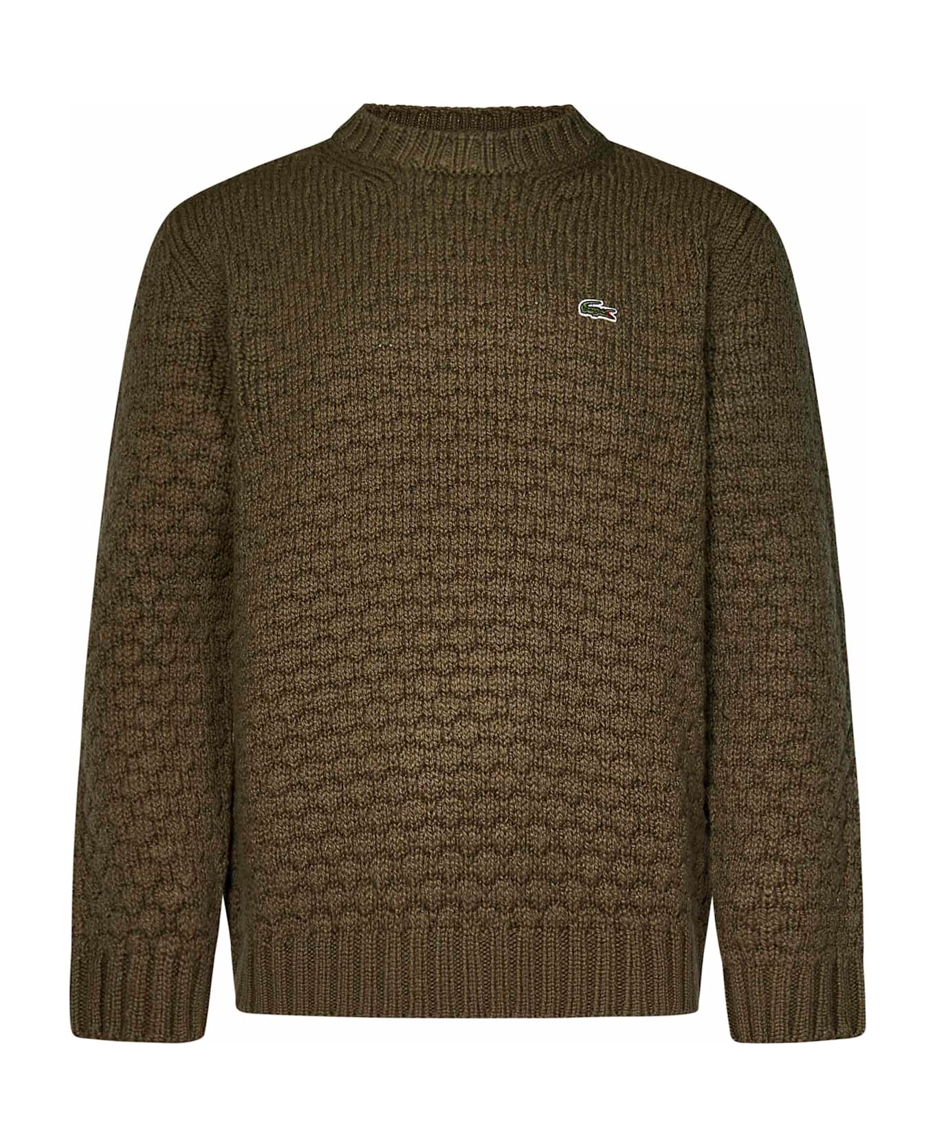 Composition: Ribbed Crewneck; Long Sleeves Crocodile Badge Embroidered At Chest Ribbed Cuffs And Bottom Band Super Thick Knit, 3 Gauge Classic Fit Khaki Green Color , 100% Wool Made In France