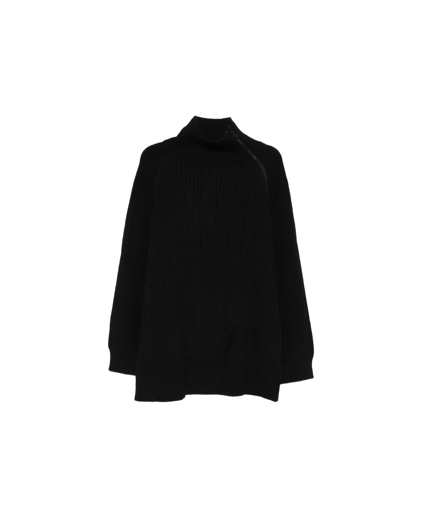 black high neck cable knit side zip fastening long sleeves relaxed fit