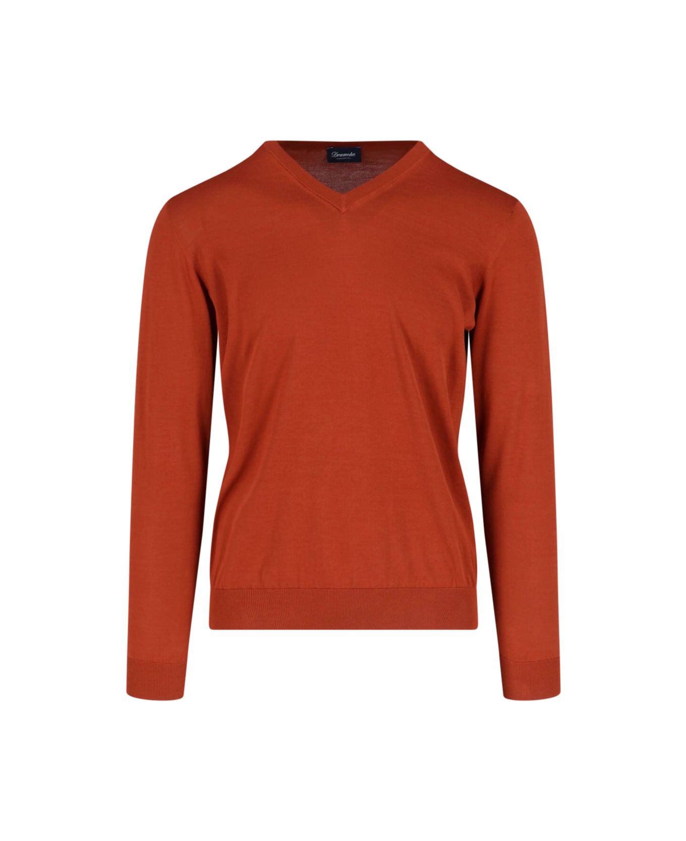 Drumohr V-neck sweater in orange cotton with ribbed trim, straight hem.