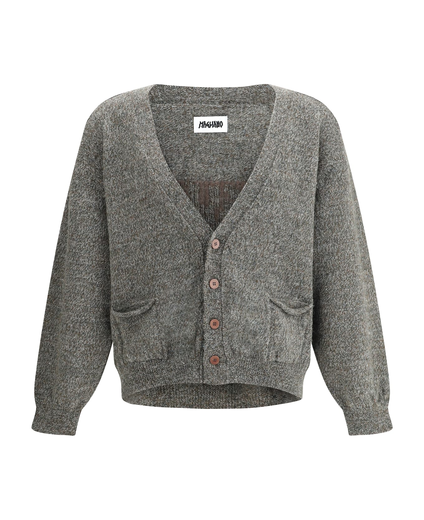 Magliano's wool cardigan is a piece with an authentic, handcrafted character. made from shetland yarn, it features a v-neck, button closure, and ribbed cuffs and hem for a structured fit. two patch pockets on the front add functionality, while the logo on the back signs the garment with a distinctive touch.