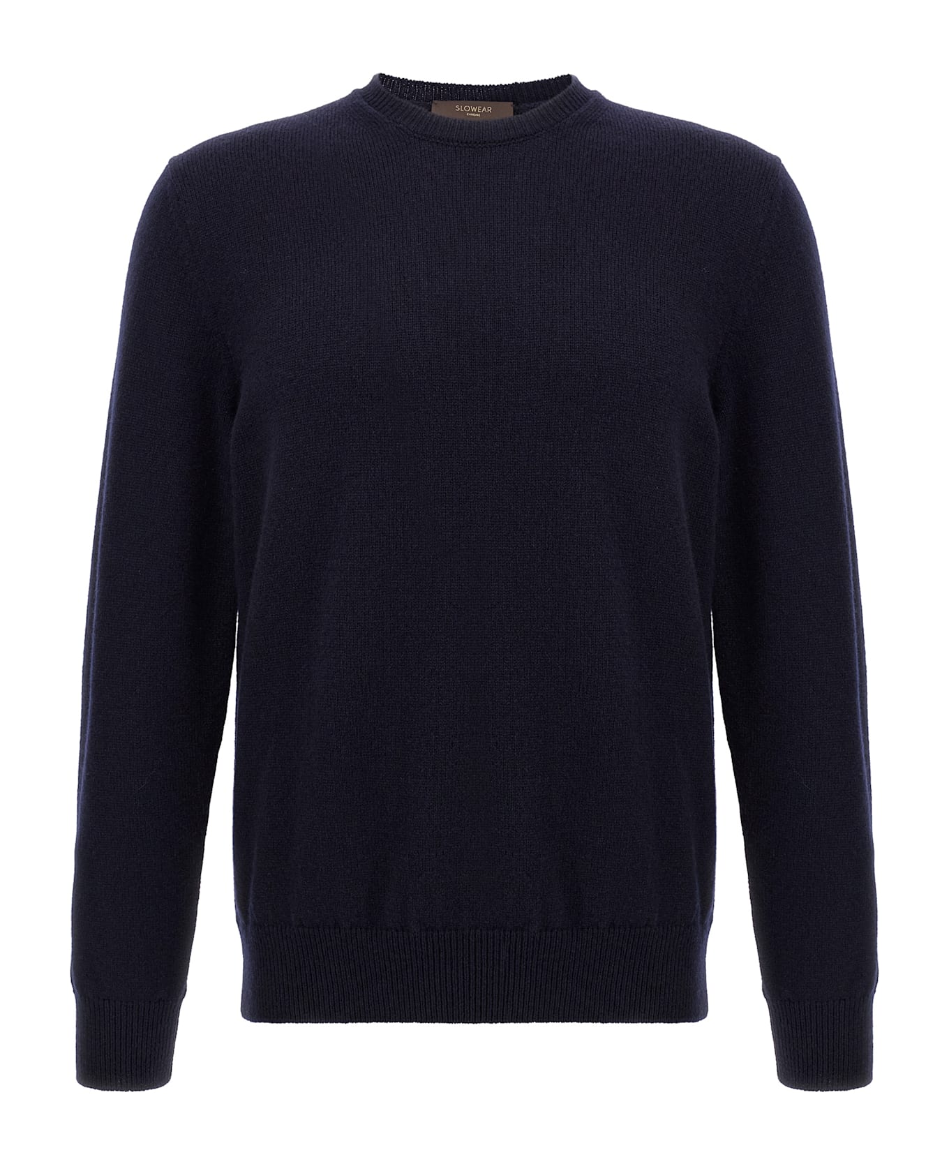 Virgin wool crewneck sweater with long cuffed sleeves.