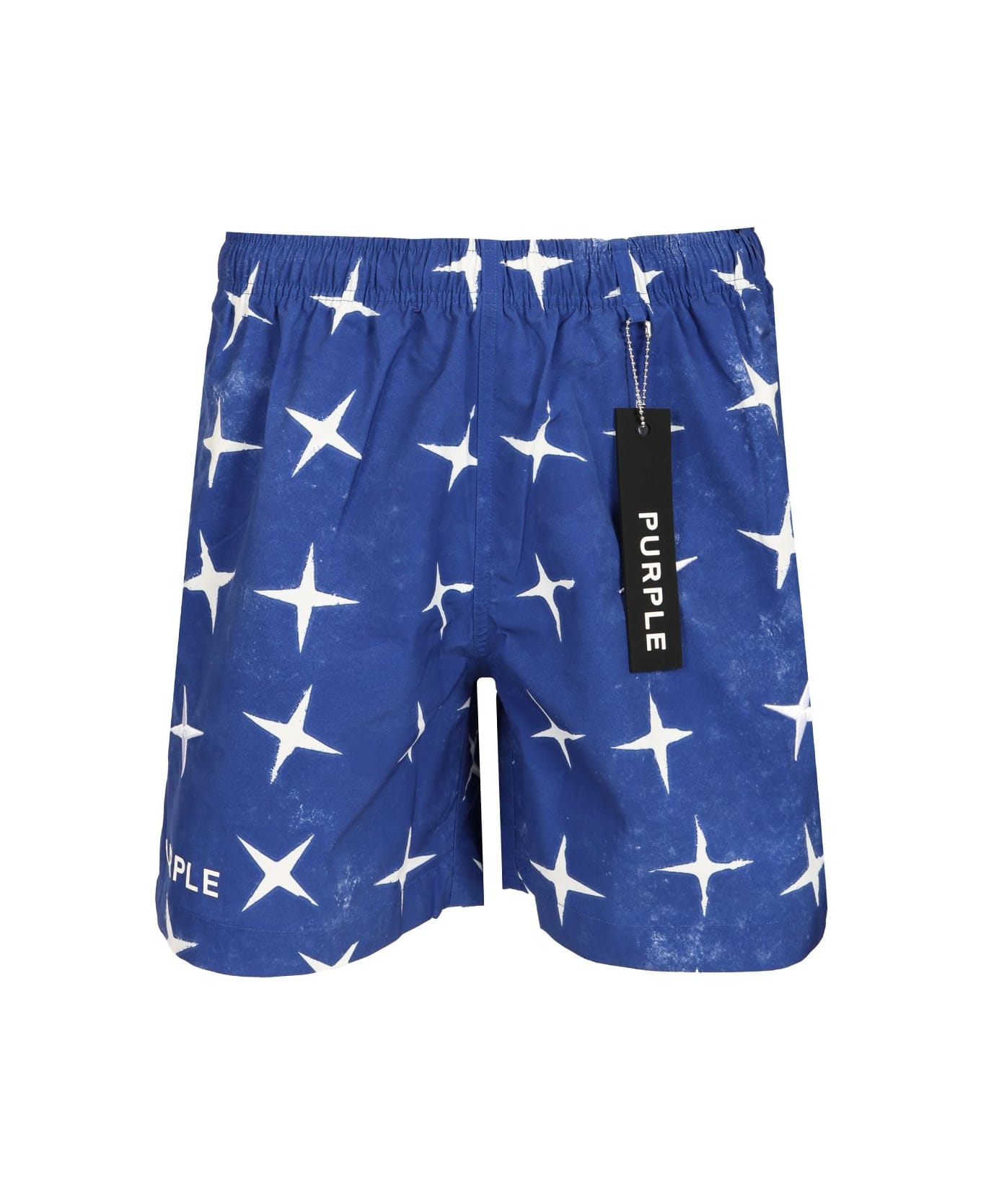 Swim shorts with all-over print, welt pockets and back pocket with flap, elasticated waist