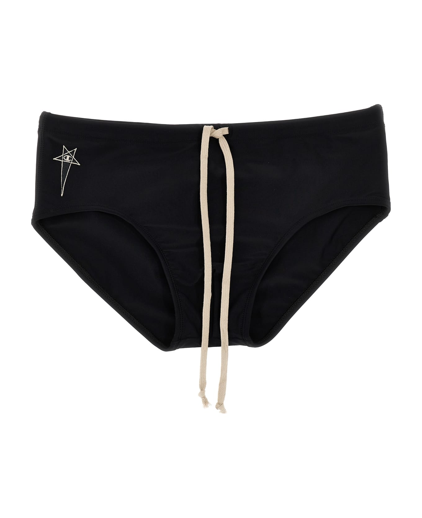 Champion x Rick Owens bikini bottoms with drawstring at the waist, and logo patch.