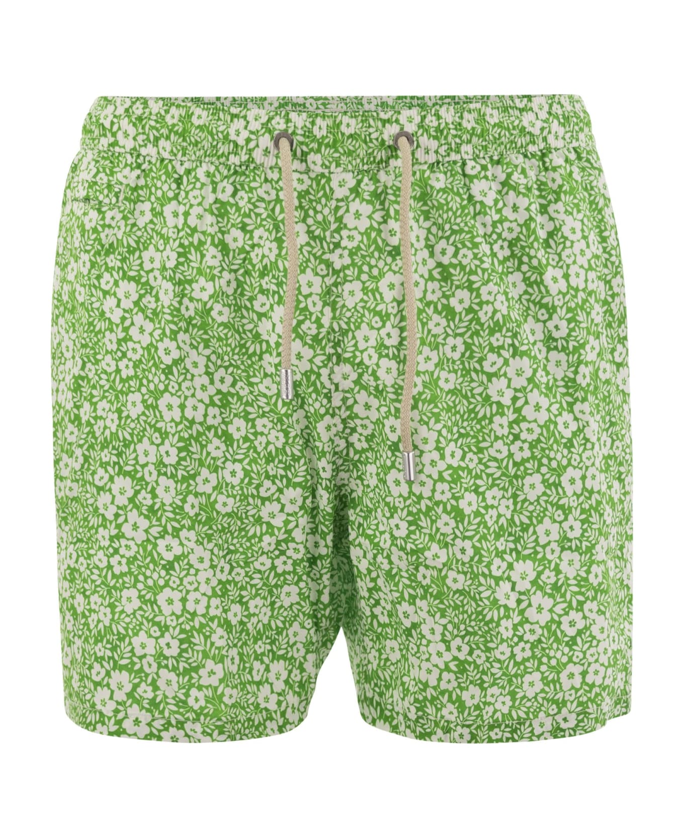 Introducing Comfort Light, the perfect swimwear companion designed for both water activities and casual outings. With its relaxed fit and essential design, this swimwear goes perfectly from the beach to the bar. The distinguishing feature of this model is its comfortable fit made from mechanical stretch fabric, a light, quick-drying fabric: style combined with comfort and practicality. This model is presented in a wide range of exclusive micro-patterns by MC2 Saint Barth. It has two side pockets, a front pocket with Velcro fastening, an elasticated waist with drawstring and logoed end pieces, an inner mesh lining, a back pocket with button fastening, logoed eyelets on the back for water drainage, and a back label with MC2 lettering. San Barth logo. - Print flowers - Mechanical stretch fabric - Soft fit - Side pockets in the seam - Back right pocket with velcro - MC2 Saint Barth signature embroidered on left hem - MC2 Saint Barth label on the back - Internal mesh briefs for extra support - Branded rear eyelets to drain water - Elastic waistband with drawstring DESIGNER ID: COM0009 04049F