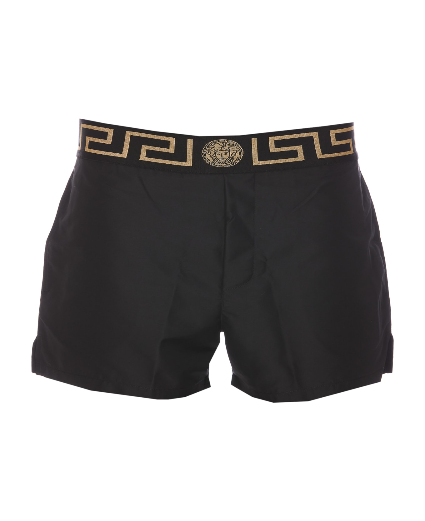 Versace black Greca Border logo swimsuit, Greca band logo, elasticized on waist, lateral pockets Composition: 100% Polyster