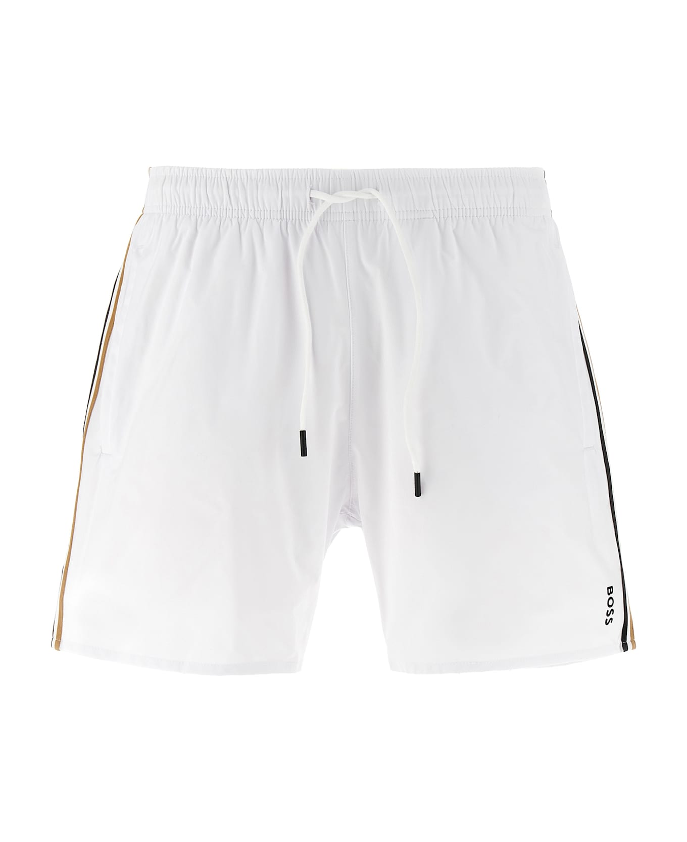 'Iconic' swimsuit in technical fabric with side knit details, short model, front logo print, adjustable drawstring elastic at the waist, pockets, inner mesh briefs. Composition: 100% elastomultiester