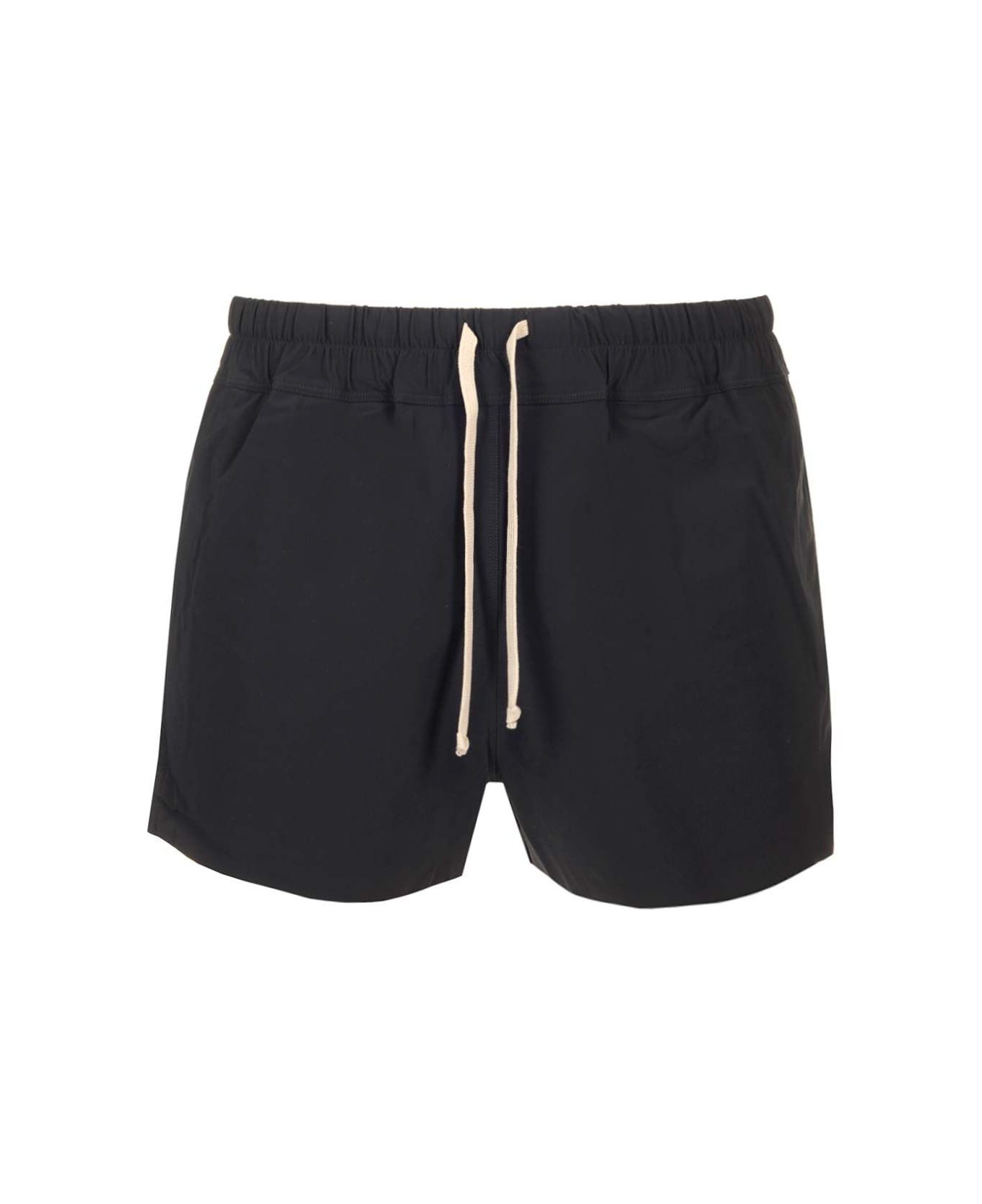Nylon swim shorts with elastic band and drawstring welt pockets
