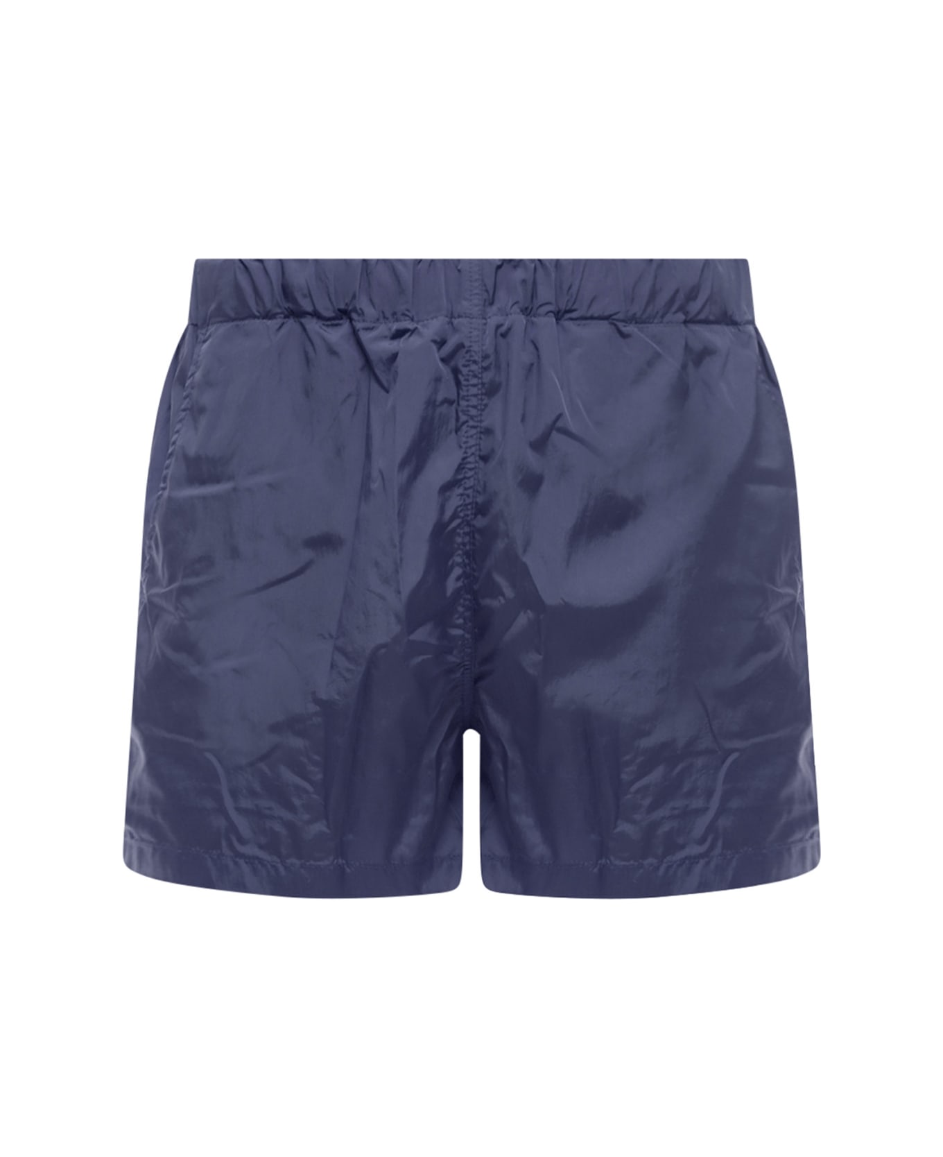 Nylon swim trunk with logoed label